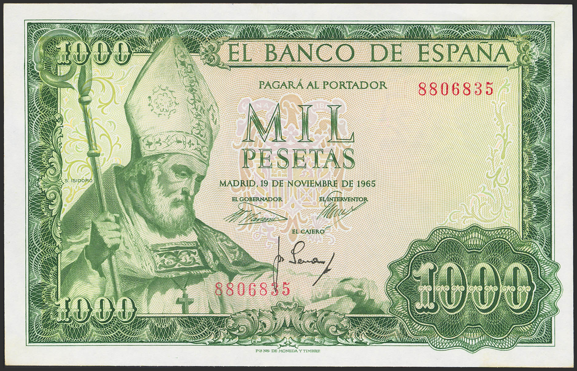 1000 Pesetas. 19 de Noviembre de 1965. Sin serie. (Edifil 2023: 471). Conserva todo su apresto original. SC.