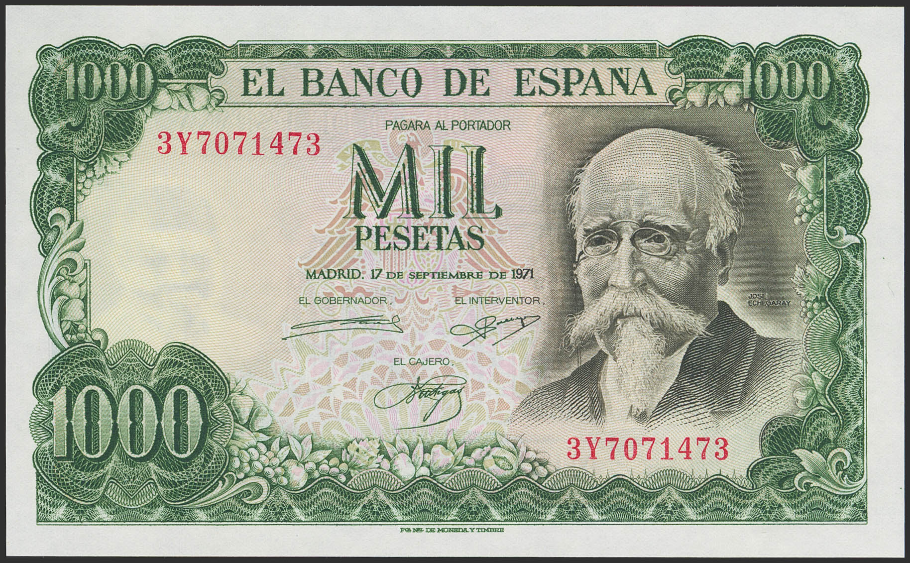 1000 Pesetas. 17 de Septiembre de 1971. Serie 3Y. (Edifil 2023: 474c). Conserva todo su apresto original. SC.