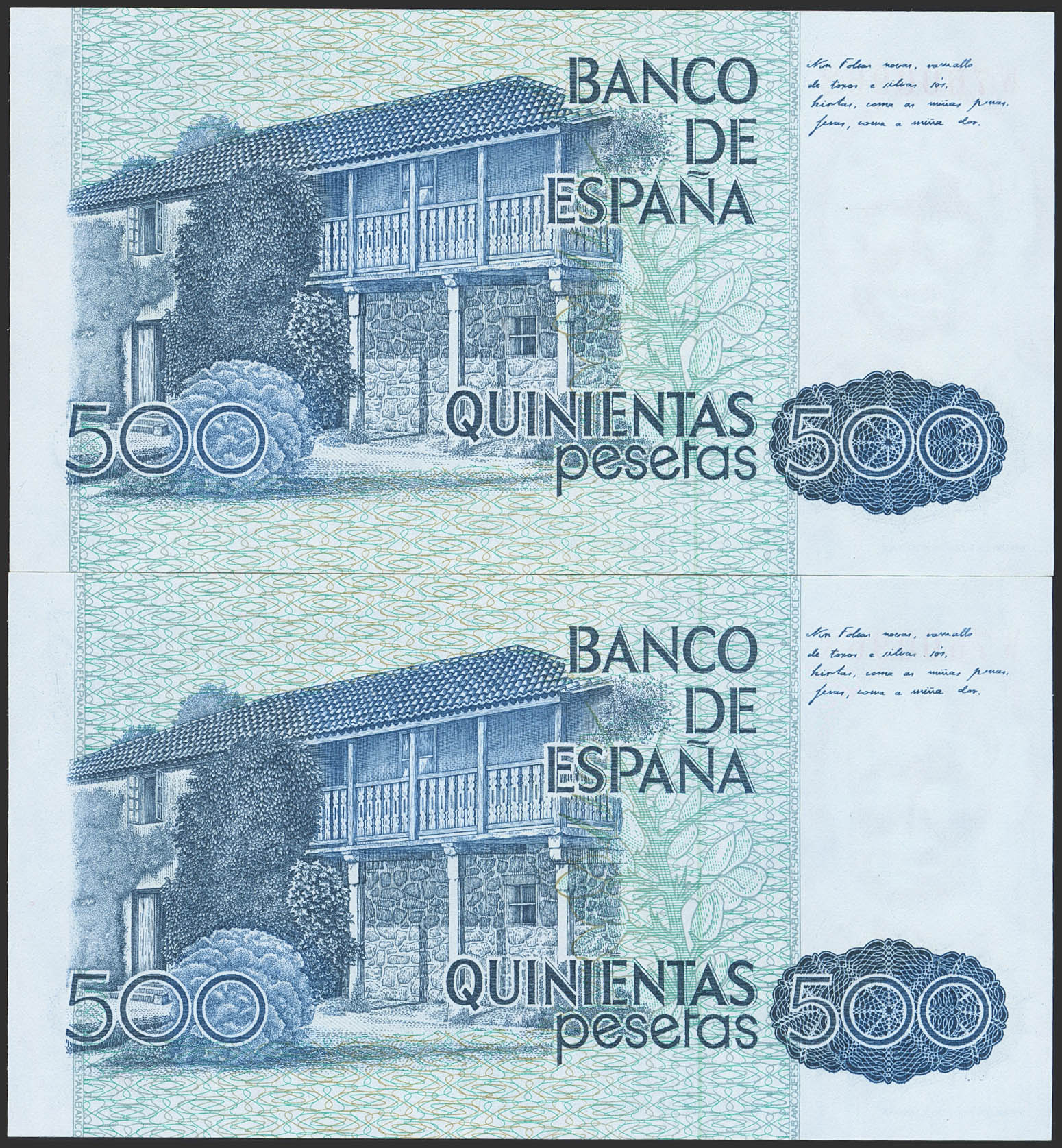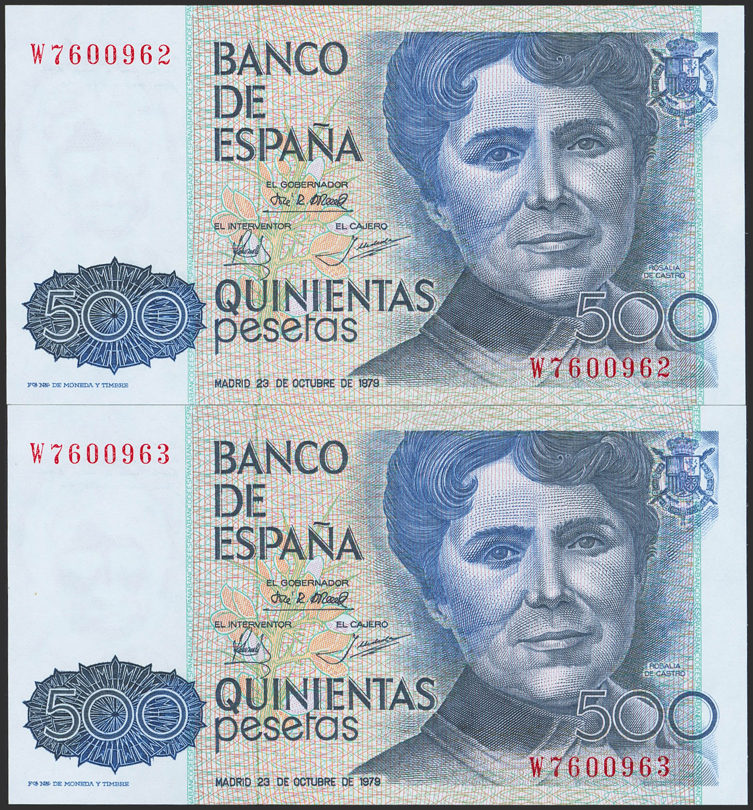 500 Pesetas. 23 de Octubre de 1979. Pareja correlativa. Serie W. (Edifil 2023: 476a). SC.