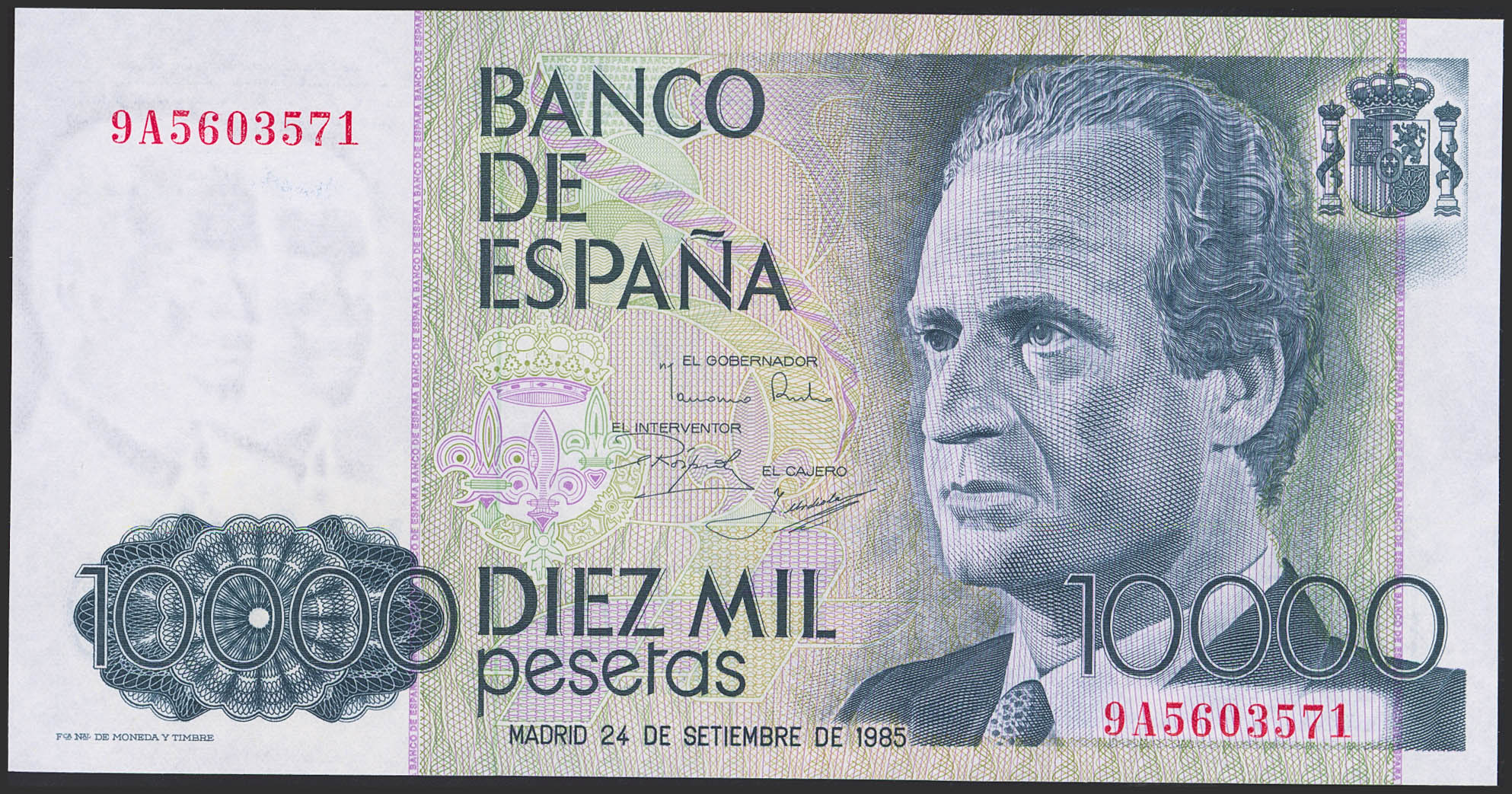 10000 Pesetas. 24 de Septiembre de 1985. Serie especial 9A. (Edifil 2023: 481b). SC.