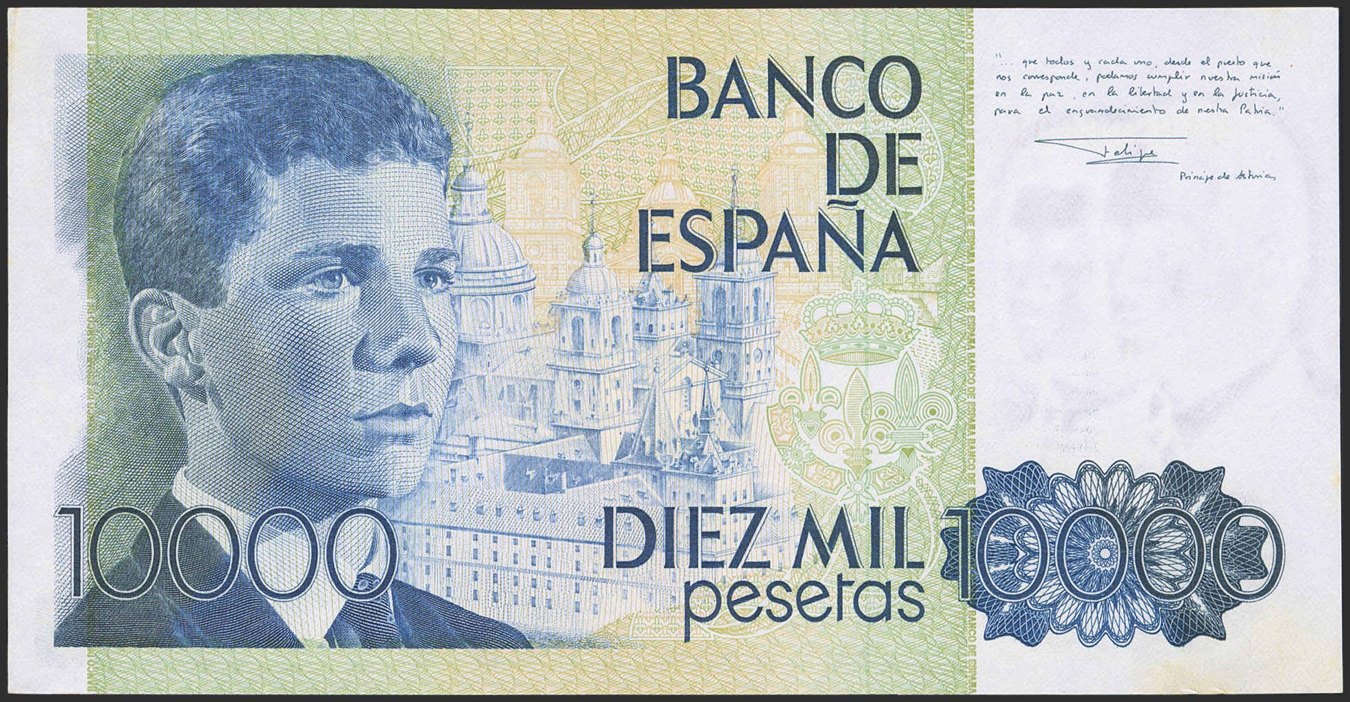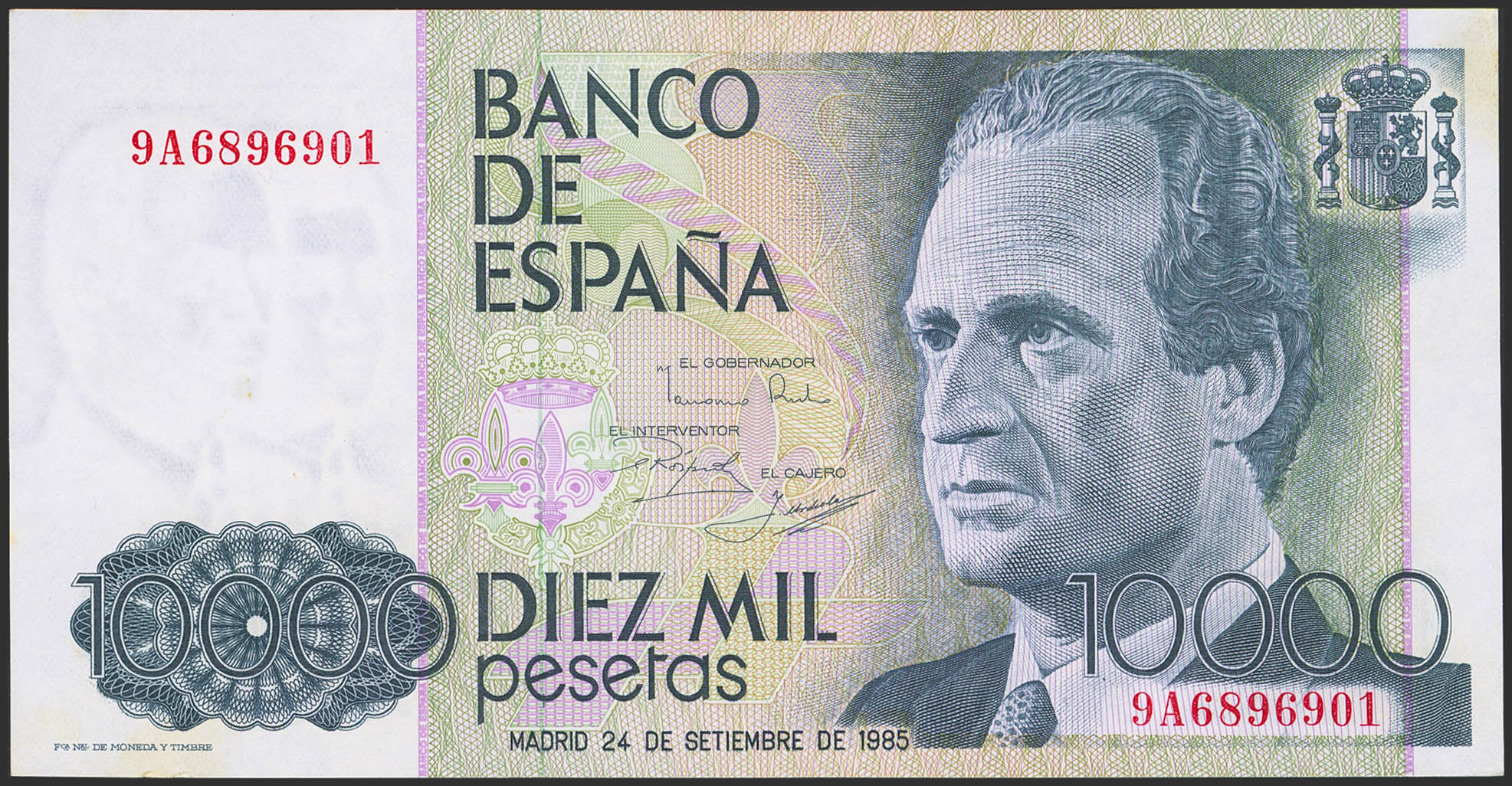 10000 Pesetas. 24 de Septiembre de 1985. Serie especial 9A. (Edifil 2023: 481b, Pick: 161*). Leves manchitas del tiempo. SC--.