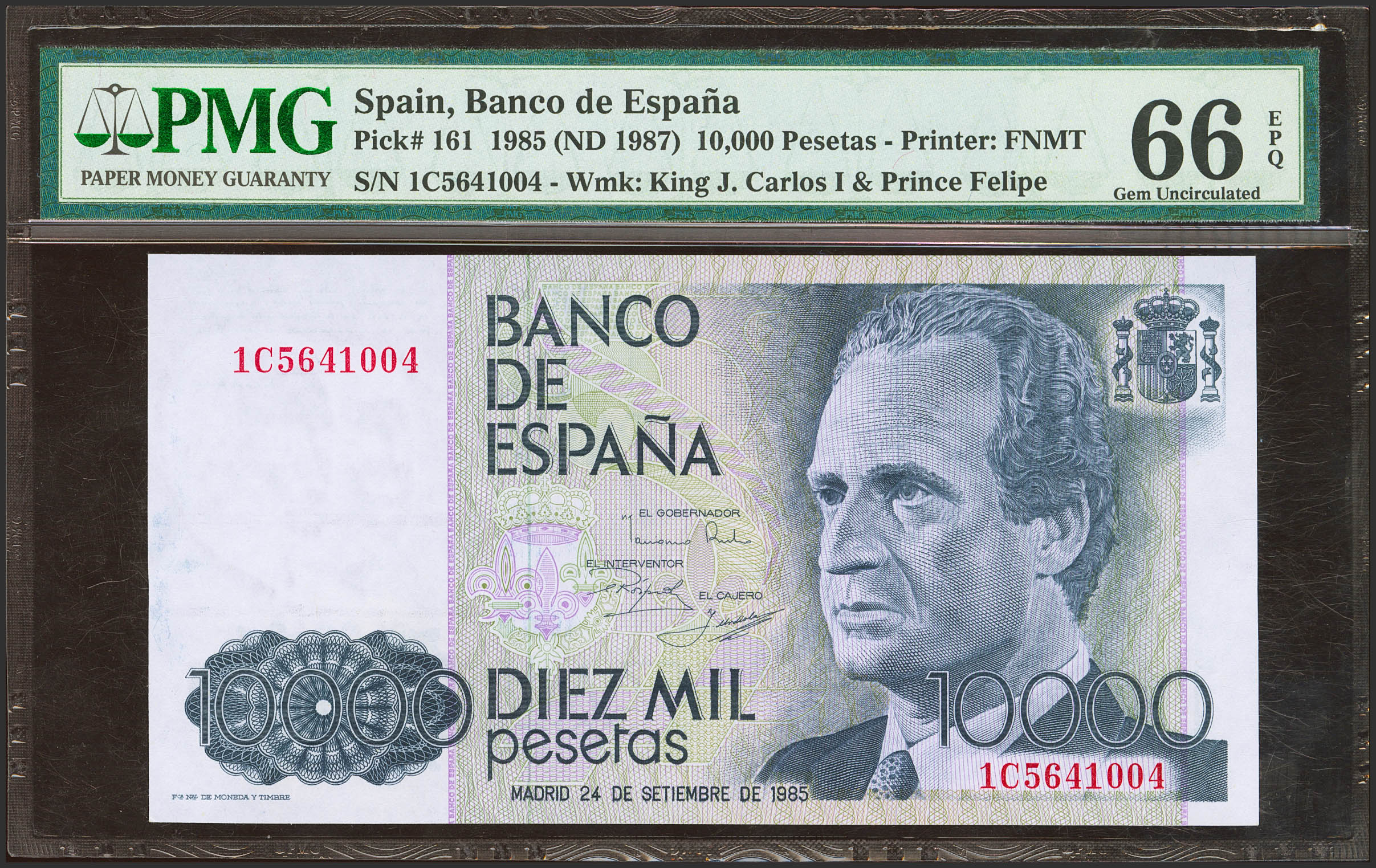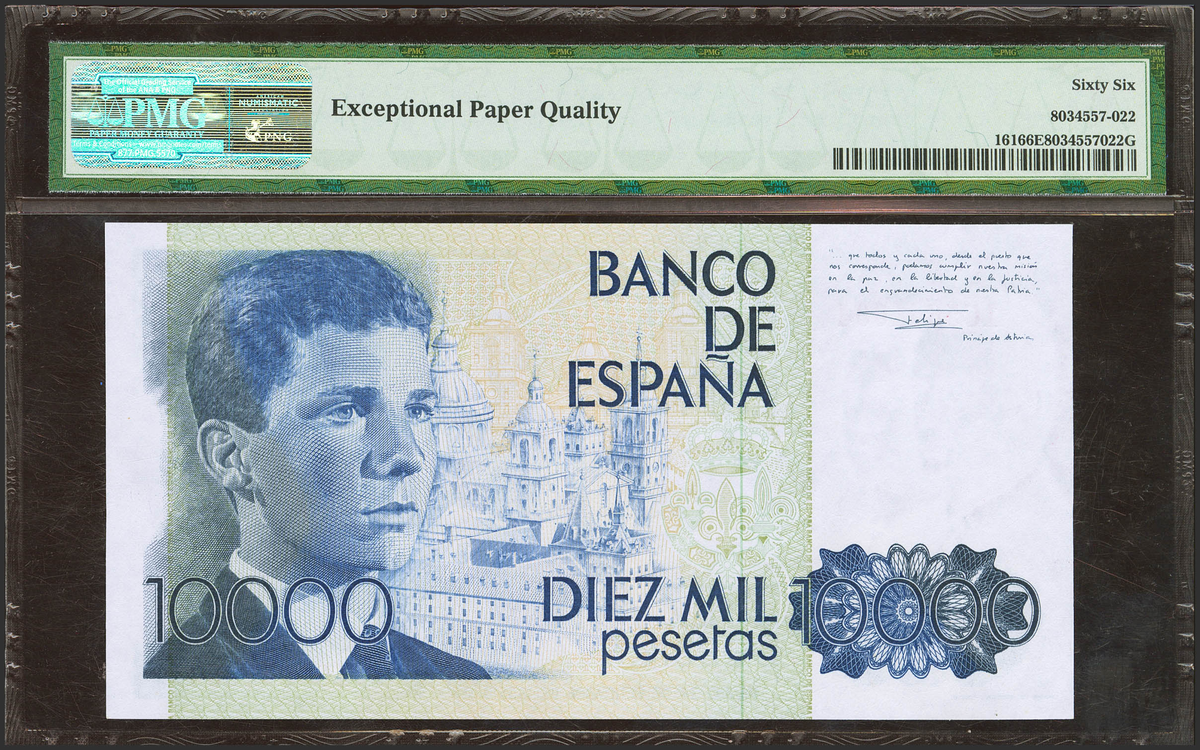10000 Pesetas. 24 de Octubre de 1985. Serie 1C. (Edifil 2023: 481a, Pick: 161). Encapsulado PMG66EPQ.
