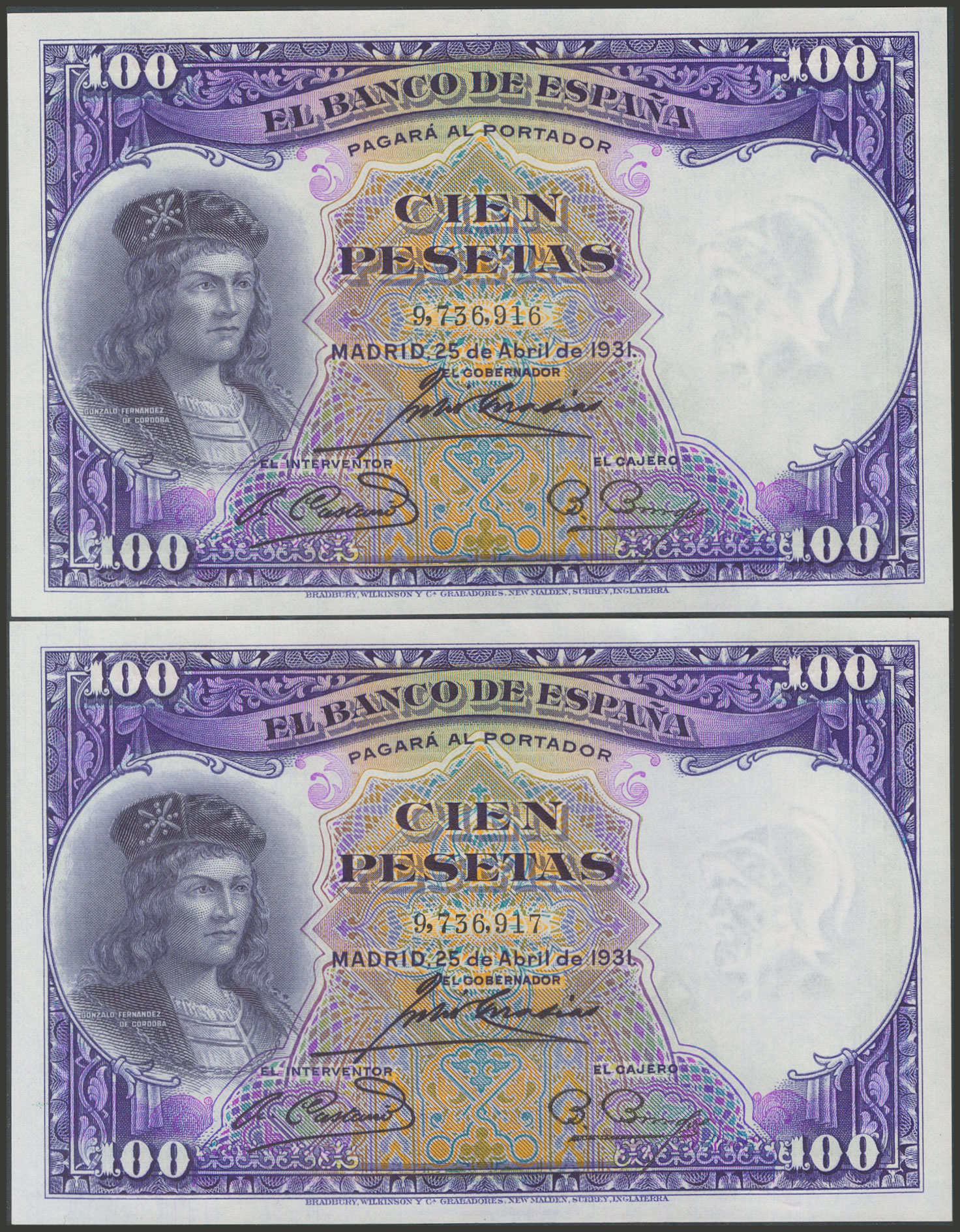 100 Pesetas. 25 de Abril de 1931. Sin serie. (Edifil 2017: 360). Conserva todo su apresto original. SC.