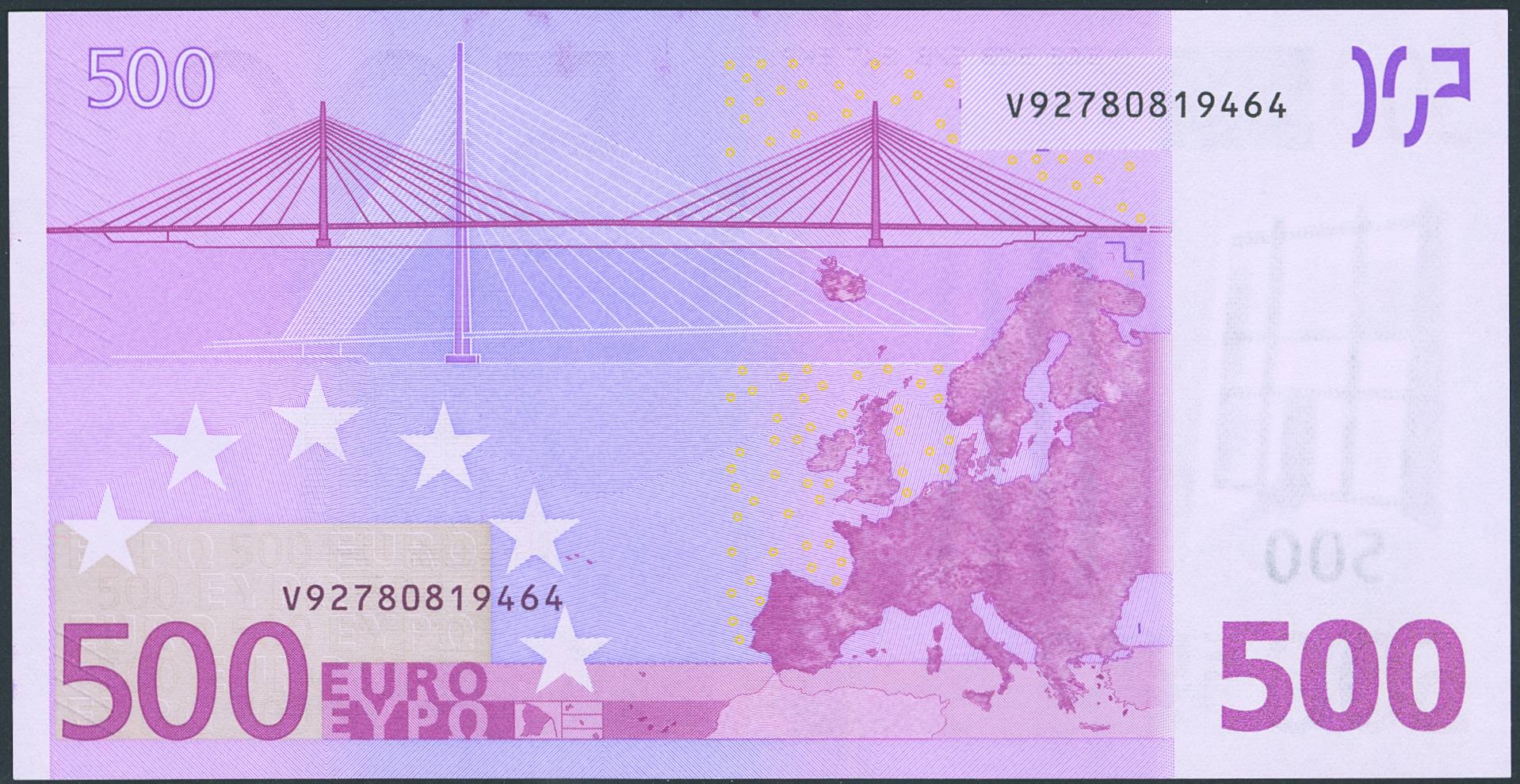 500 Euros. 1 de Enero de 2002. Firma Duisenberg. Serie V (España). (Edifil 2023: 492). SC.