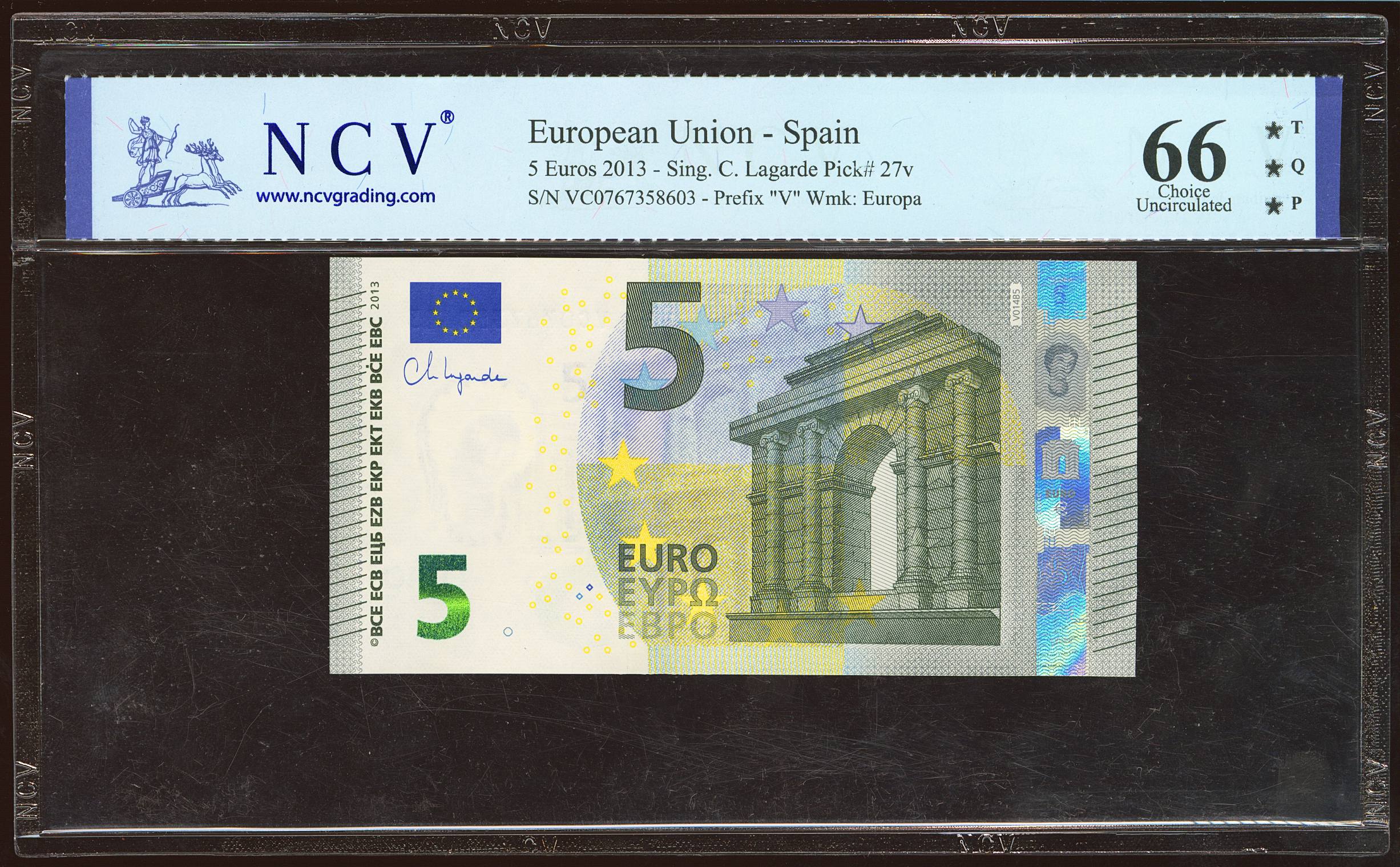 5 Euros. 2 de Mayo de 2013. Firma Lagarde. Serie V (España). (Edifil 2023: 493Aa, Pick: 27v). SC. Encapsulado NCV66TPQ.