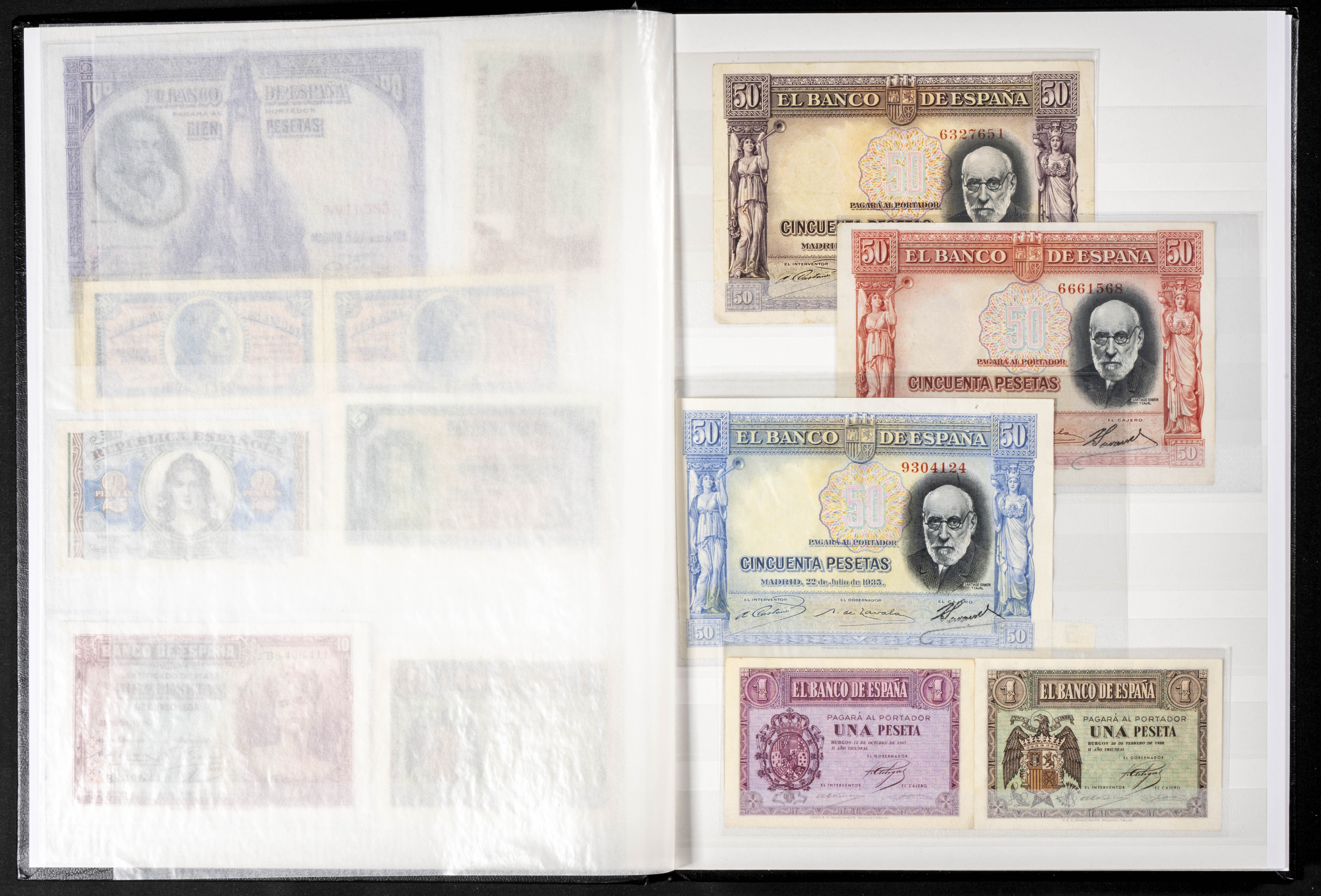 Precioso e interesante conjunto de más de 55 billetes del Banco de España, de diversas emisiones y en diferentes calidades. A EXAMINAR.