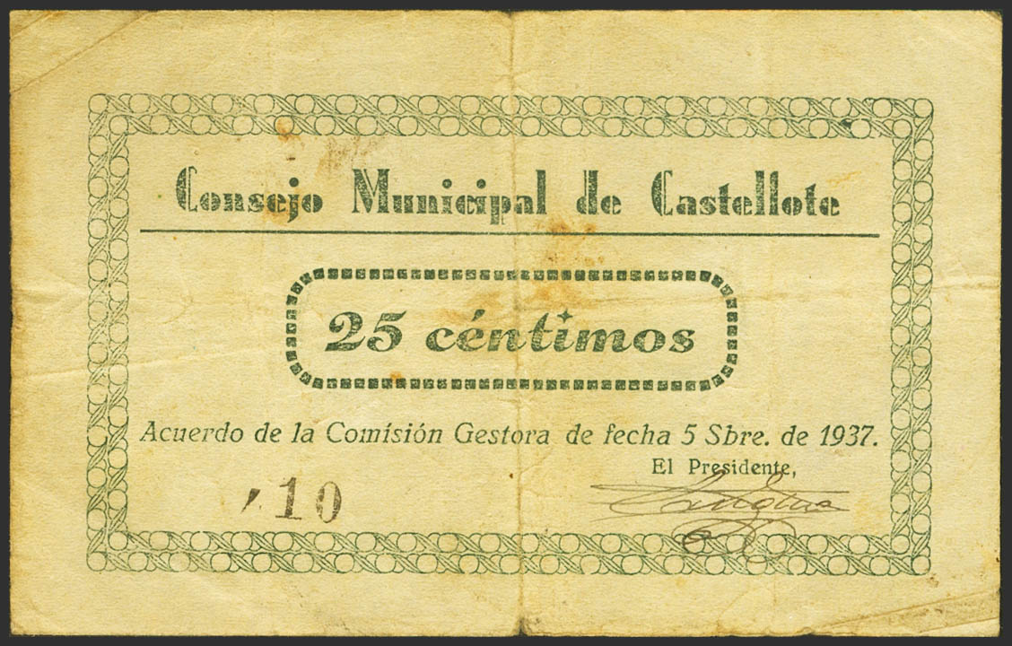 CASTELLOTE (TERUEL). 50 Céntimos. 5 de Septiembre de 1937. (González: 1791). Inusual. MBC-.