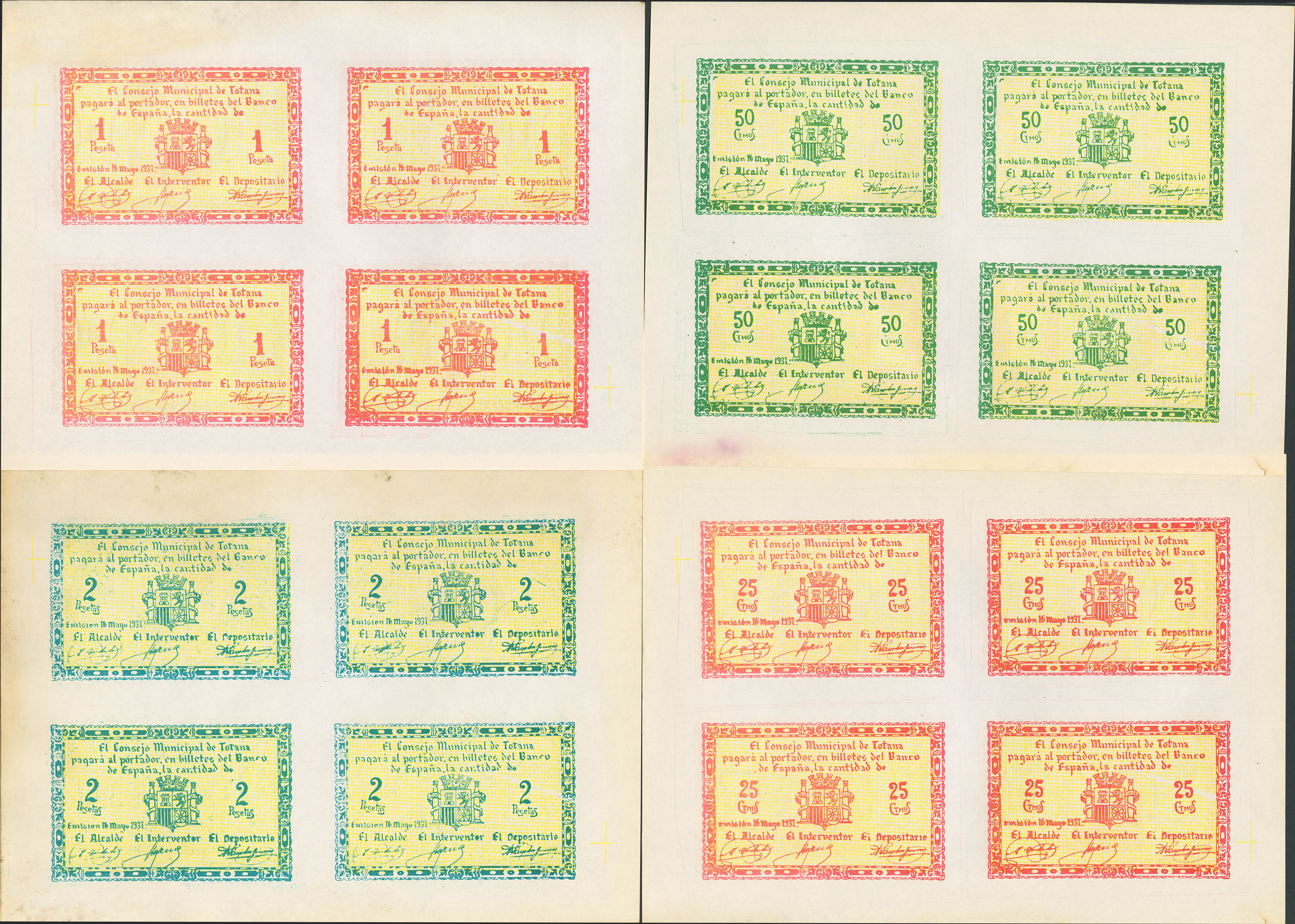 Conjunto de la serie completa de Totana, falsa en bloques de cuatro. A EXAMINAR.