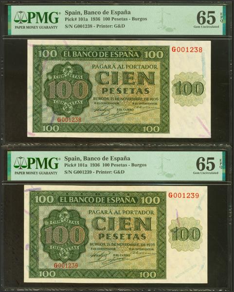 1000 Pesetas. 21 de Noviembre de 1936. Serie B. (Edifil 2023: 423a, Pick: 103a). Muy raro en esta excepcional calidad, apresto original. EBC+++. Encapsulado PMG58EPQ. (este billete no presenta doblez central, sólo unas pequeñas arruguitas, esta ha sido la razón de PMG de calificarlo con 58EPQ, procede de la subasta de Martí Hervera del 9 de Noviembre de 2024 vendido por 2700 euros más las correspondientes comisiones, entonces fue calificado con un SC con la mención de las arruguitas).