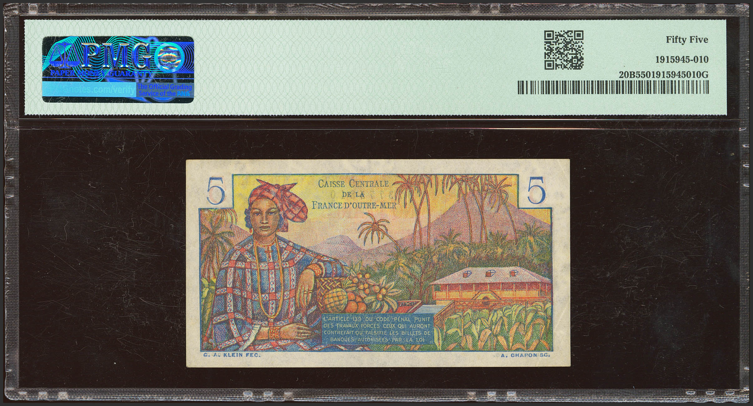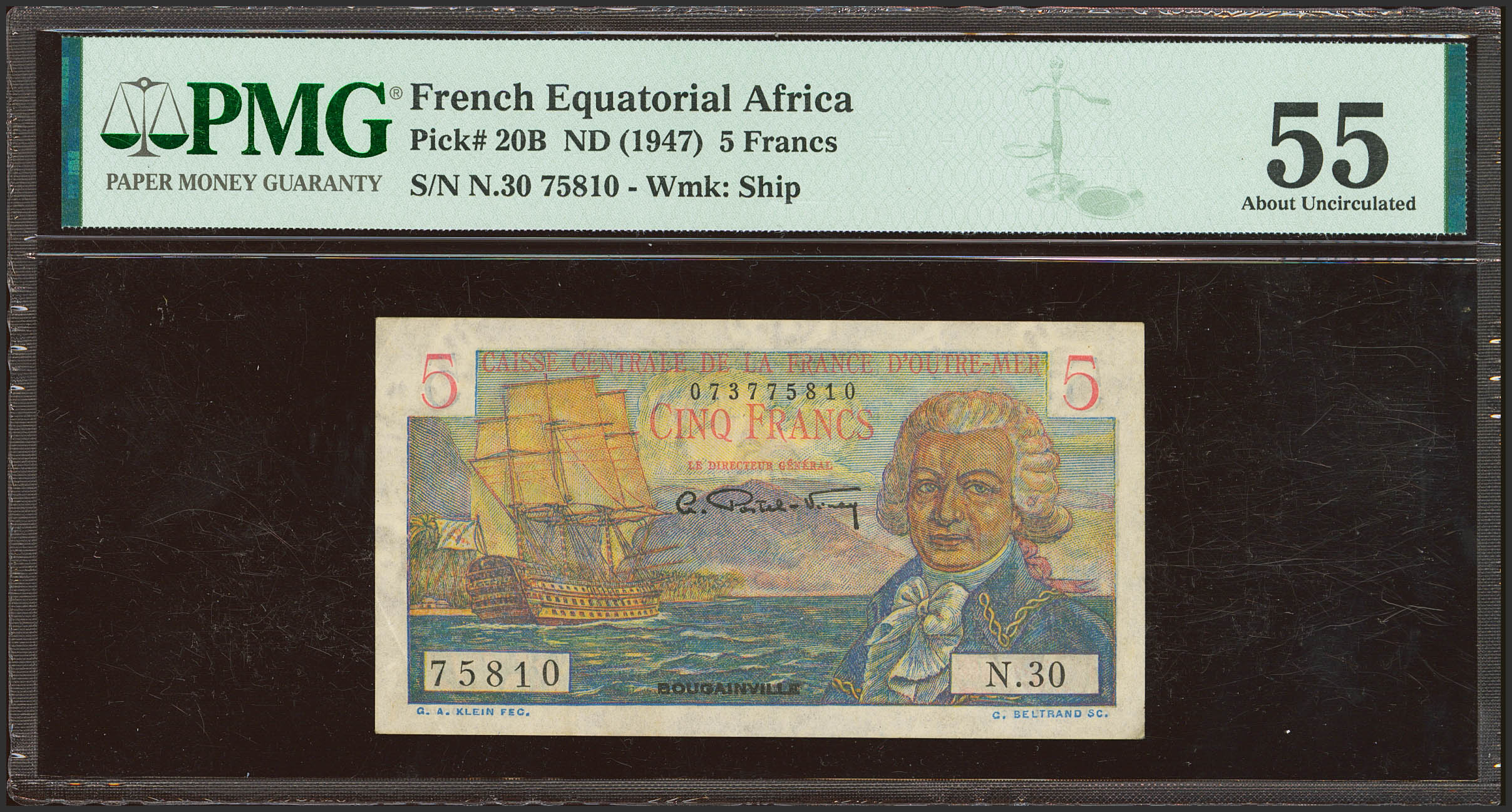 FRENCH EQUATORIAL AFRICA. 5 Francs. (Pick: 20B). PMG55.