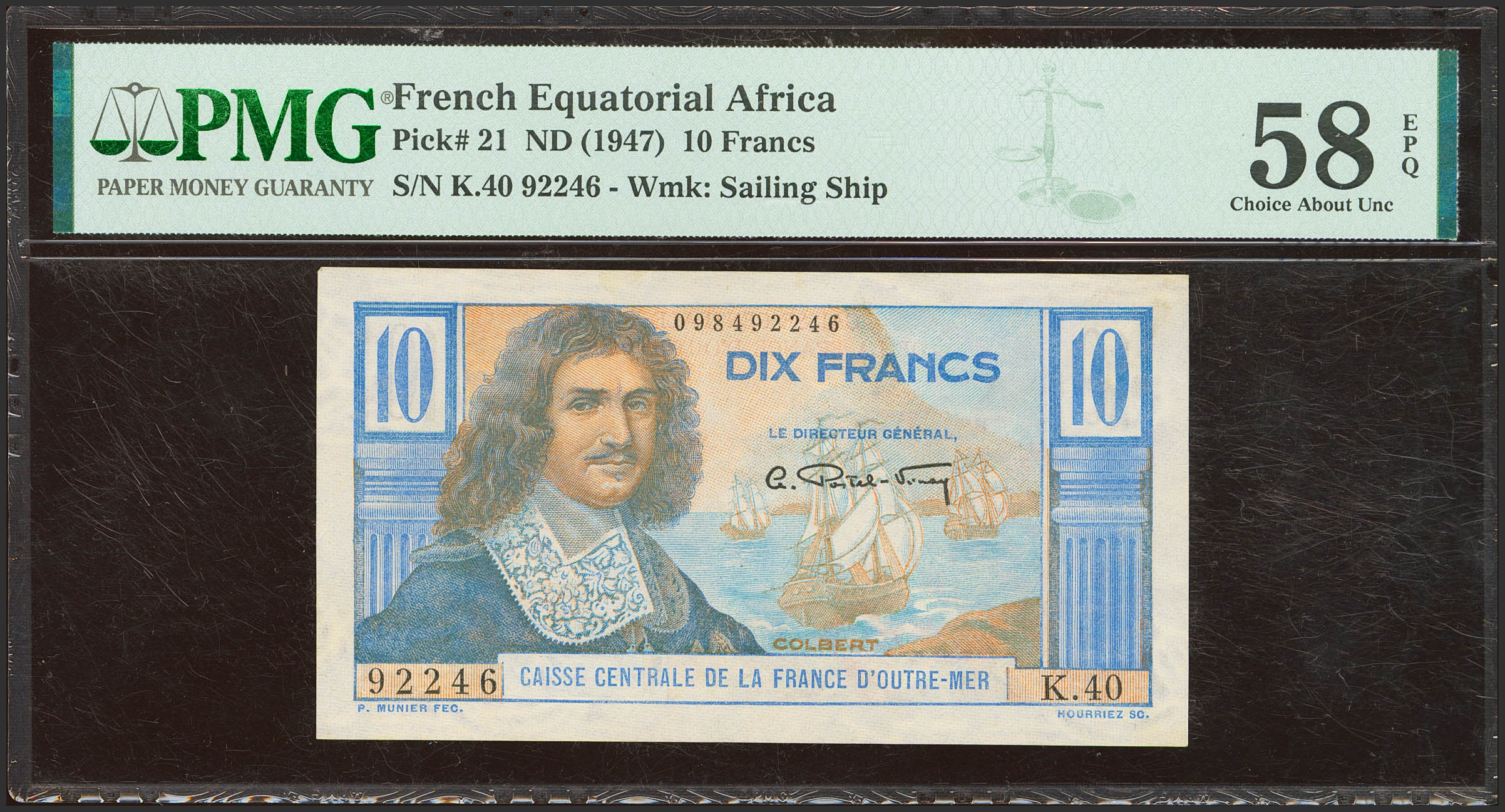 FRENCH EQUATORIAL AFRICA. 10 Francs. (Pick: 21). PMG58EPQ.