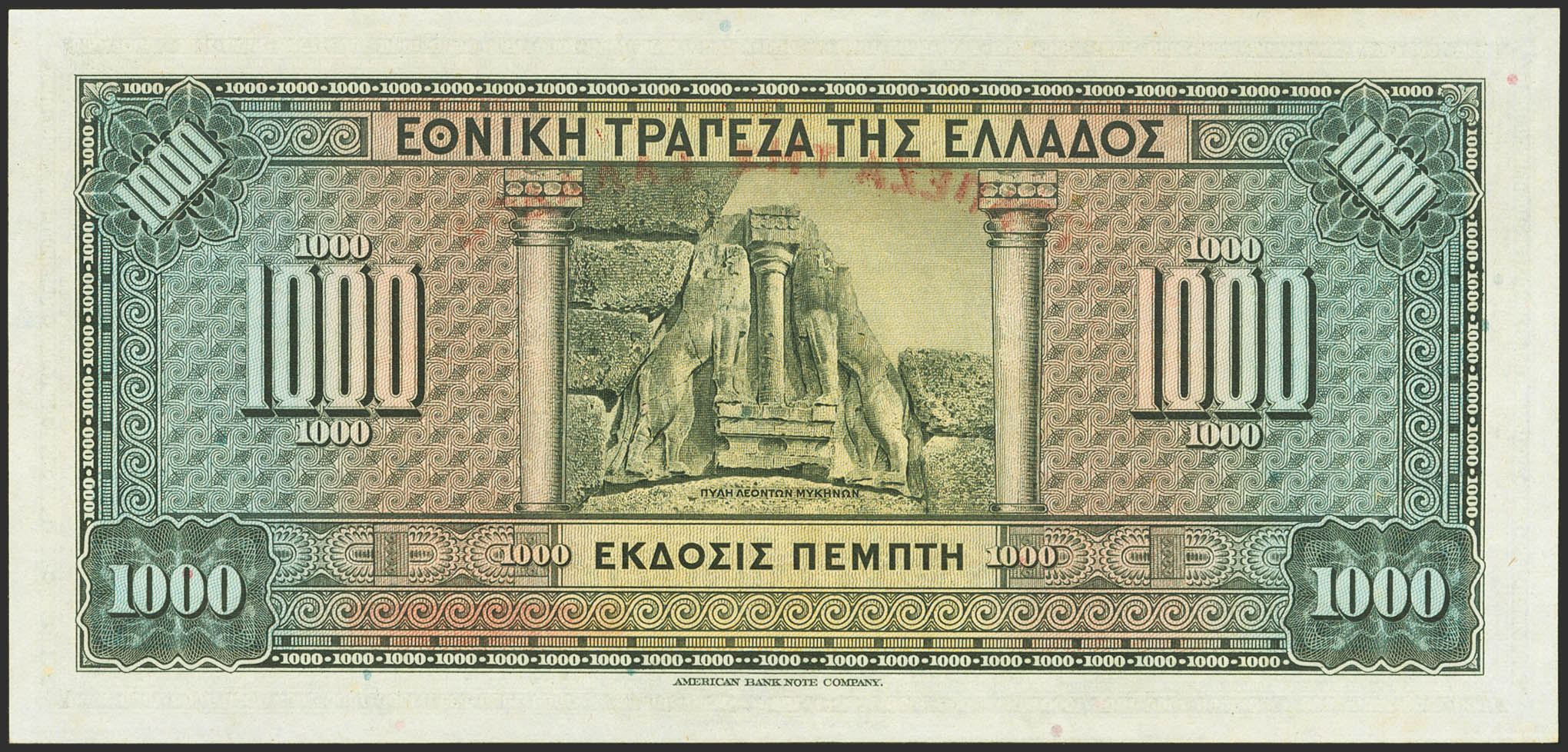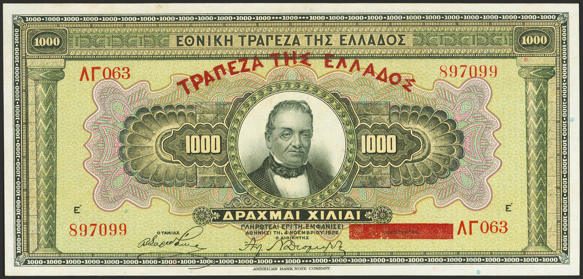 GREECE. 1000 Drachmai. 1928. (Pick 100b). Uncirculated