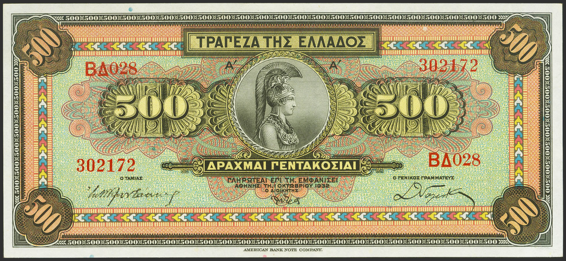 GREECE. 500 Drachmai. 1932. (Pick 102). Uncirculated.