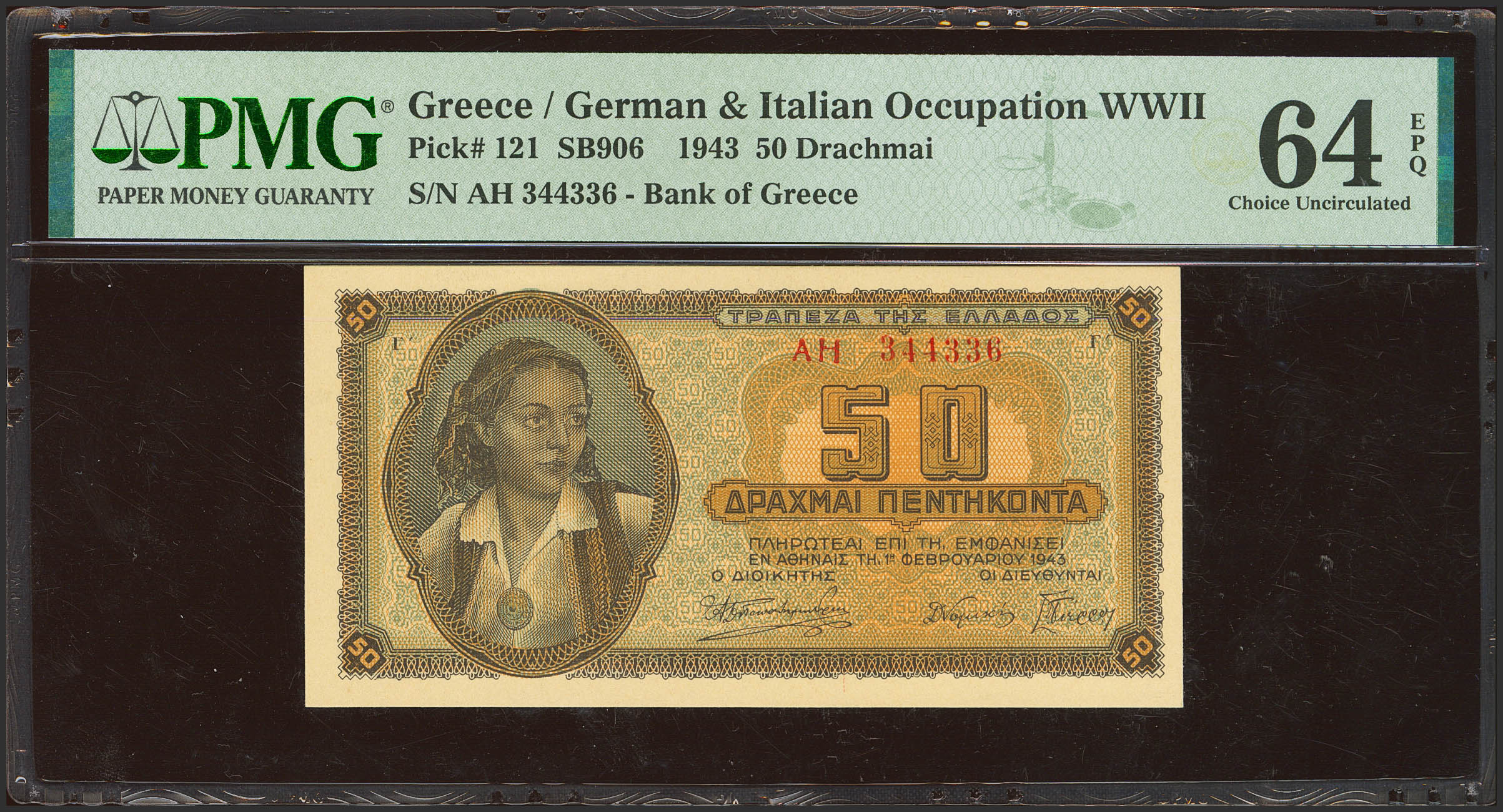 GREECE. 50 Drachmai. 1943. (Pick: 121). PMG64EPQ.