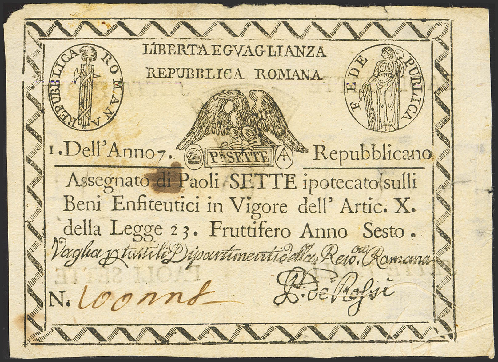 ITALY. 7 Paoli. 1798. (Pick: S537). Very Good.