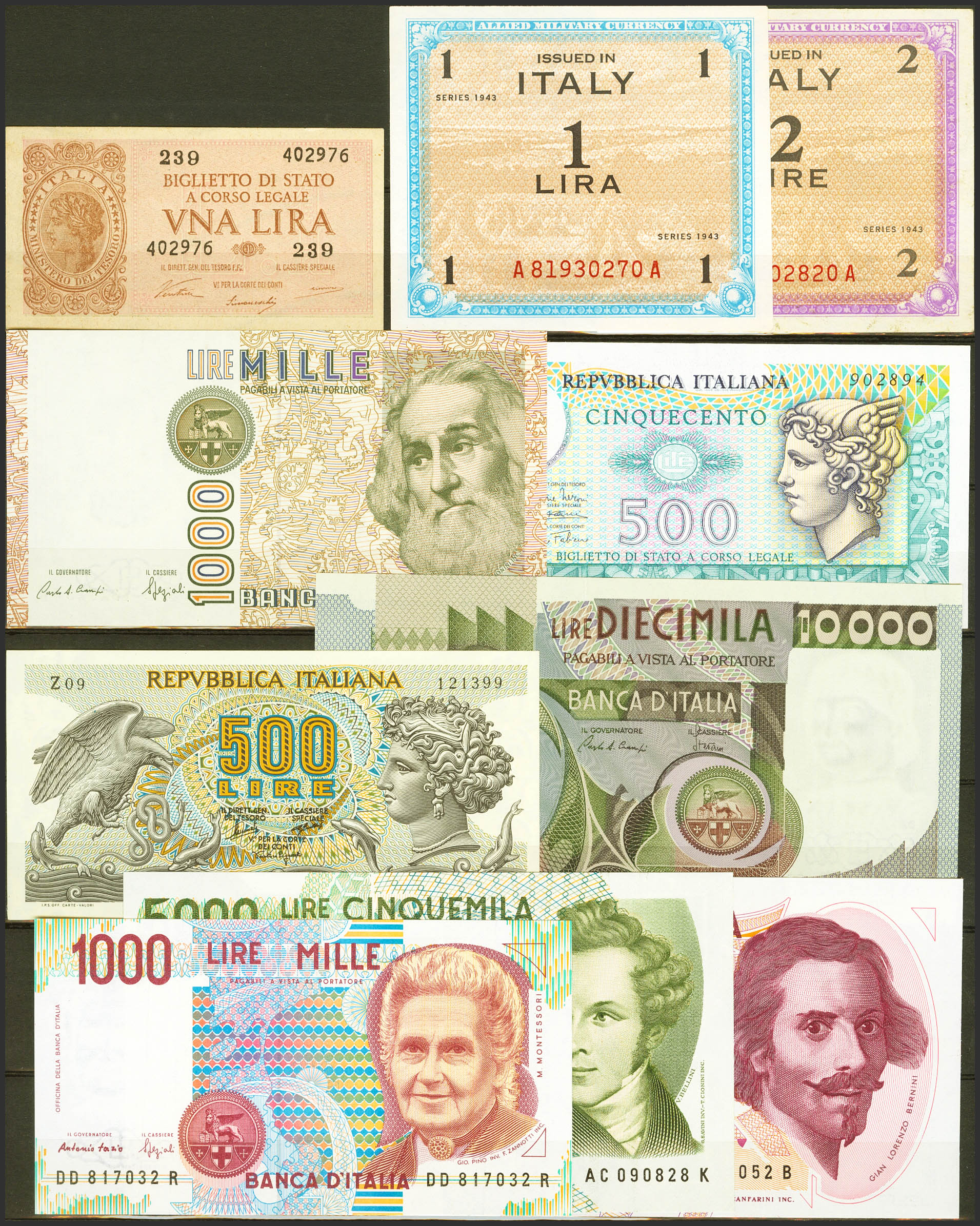 Set of more than 10 Bank of Italy banknotes of different issues and most of them uncirculated. TO EXAMINE.