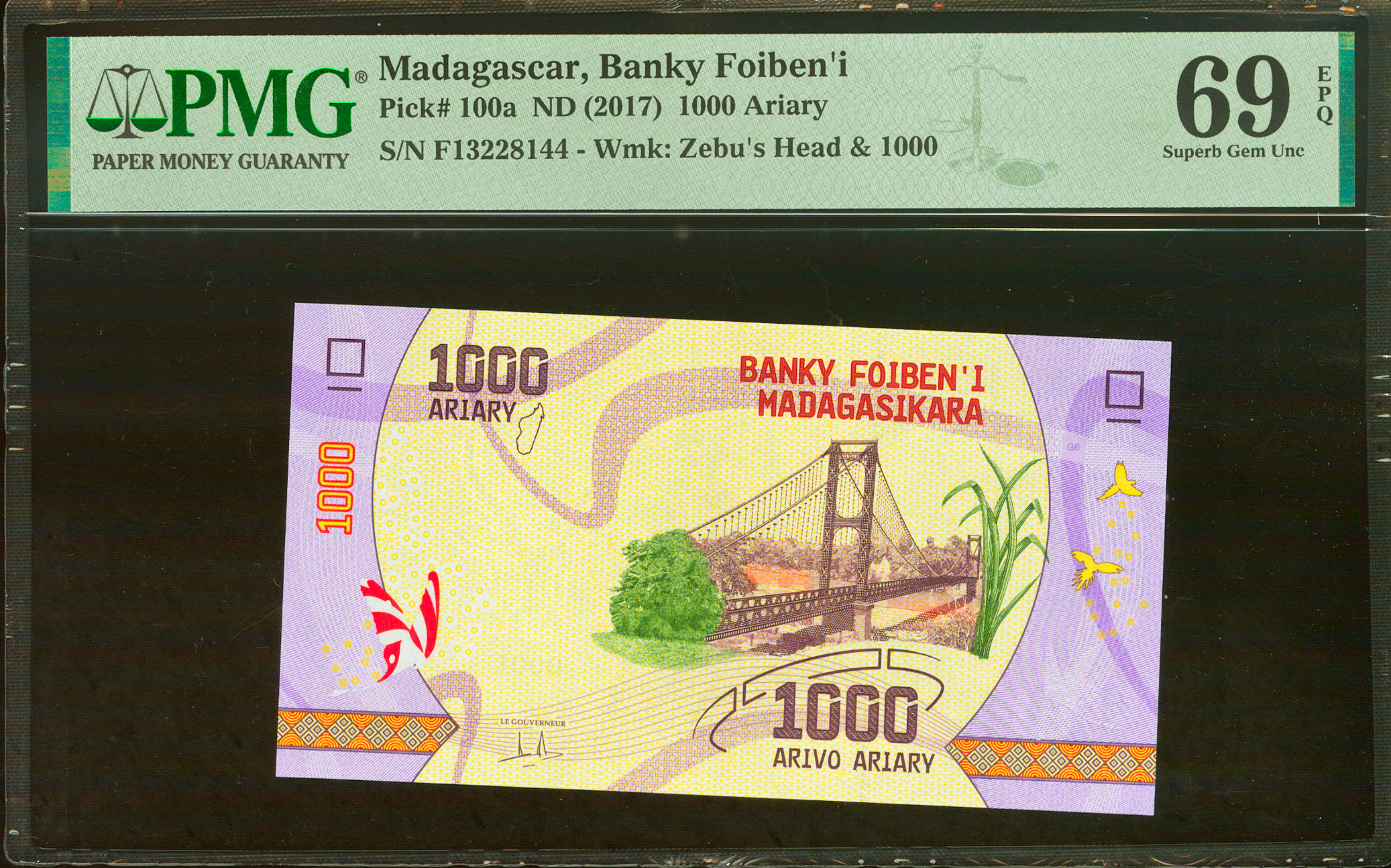 MADAGASCAR. 1000 Ariary. 2017. (Pick: 100a). PMG69EPQ.