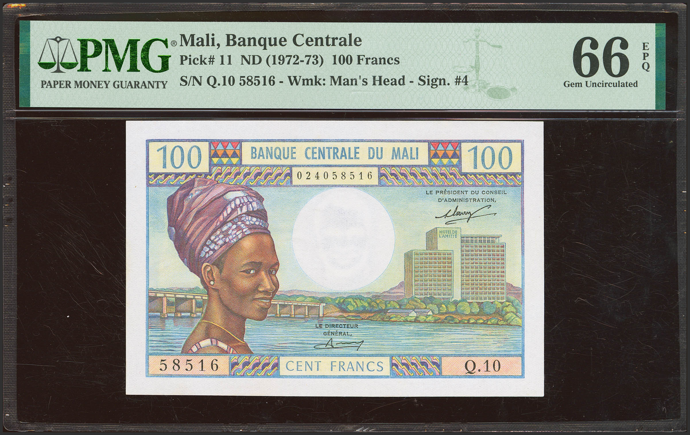 MALI. 100 Francs. (1972ca). (Pick: 11). PMG66EPQ