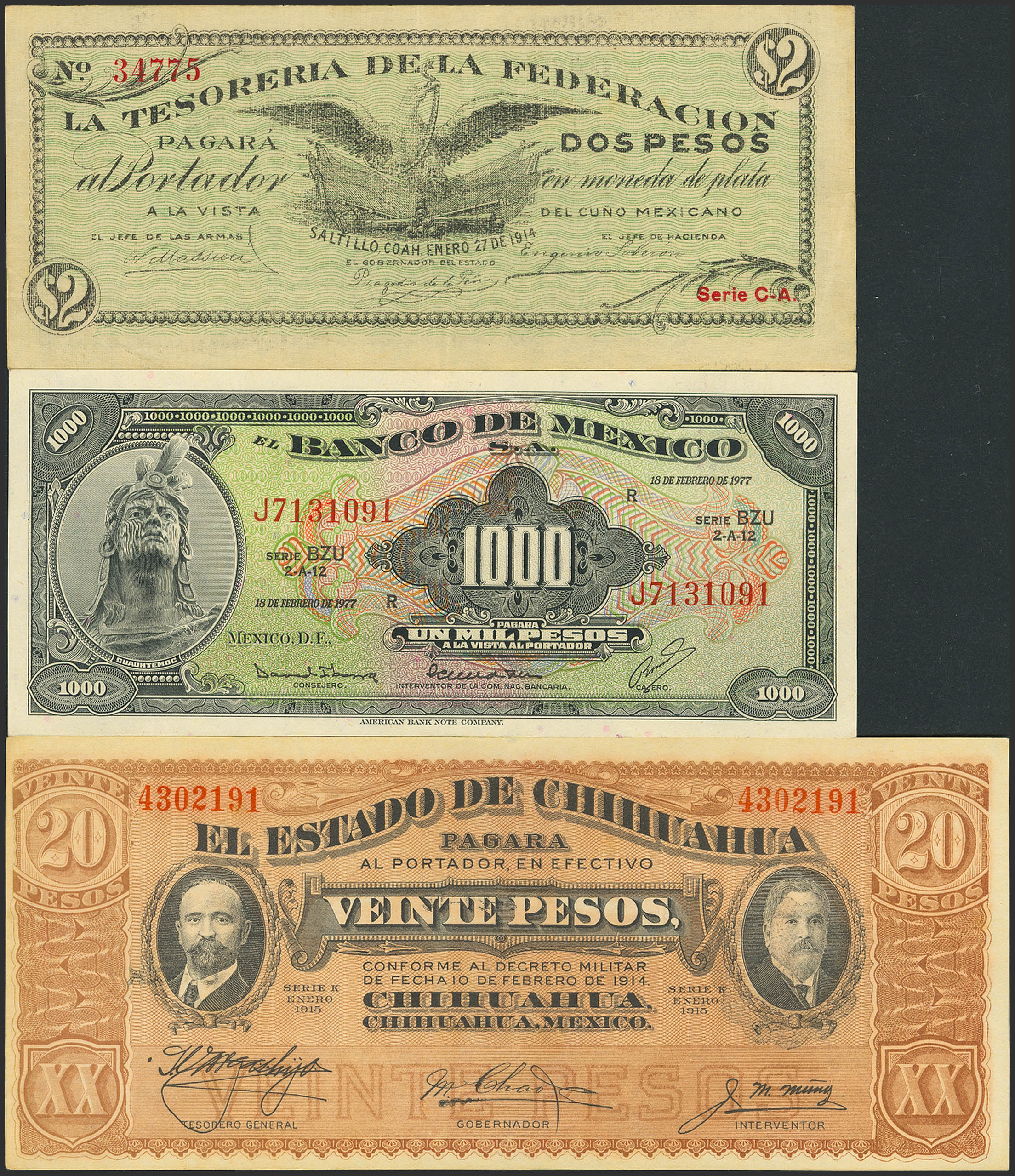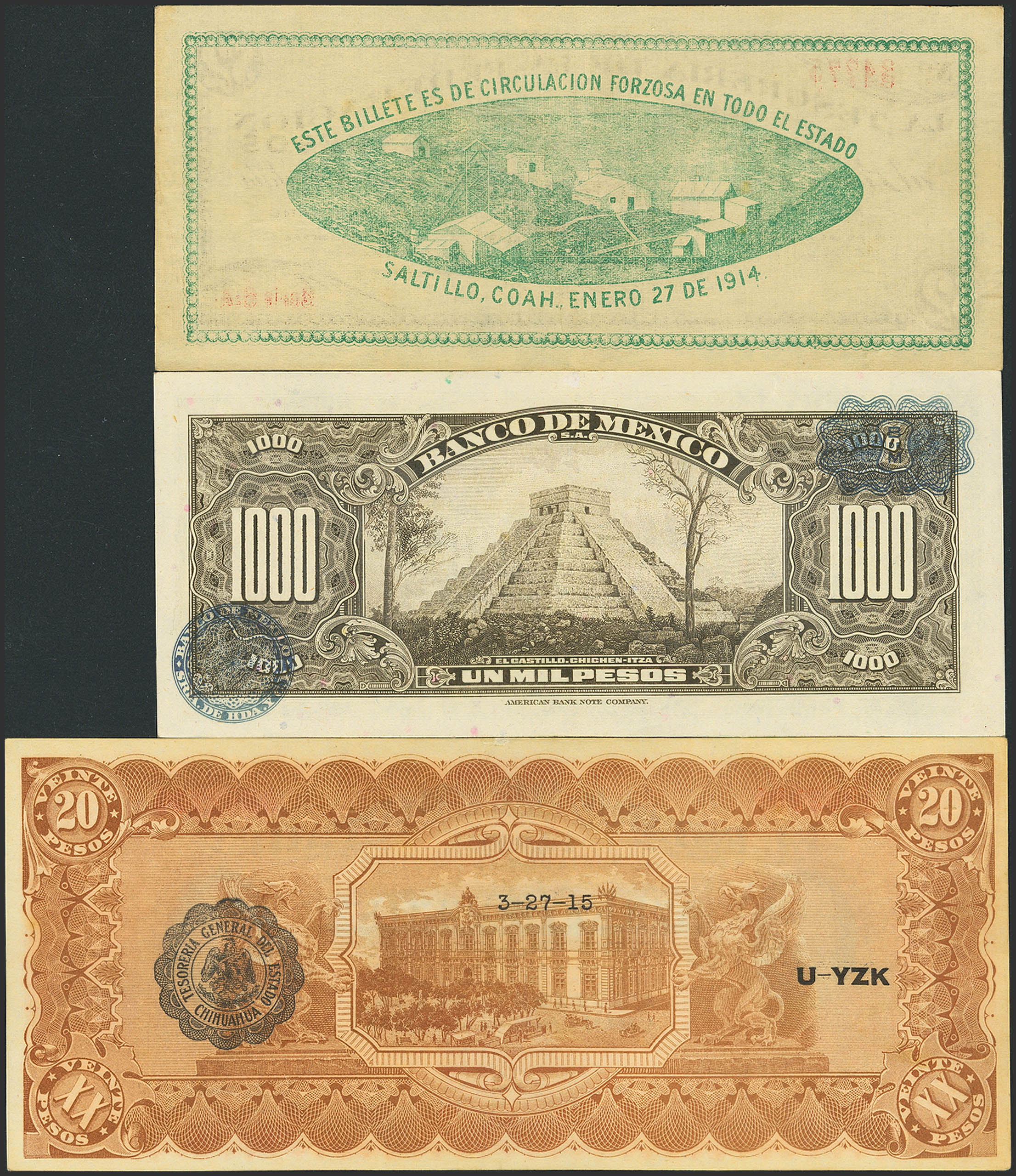 Set of 3 Mexico banknotes, in different qualities and different issues. TO EXAMINE.