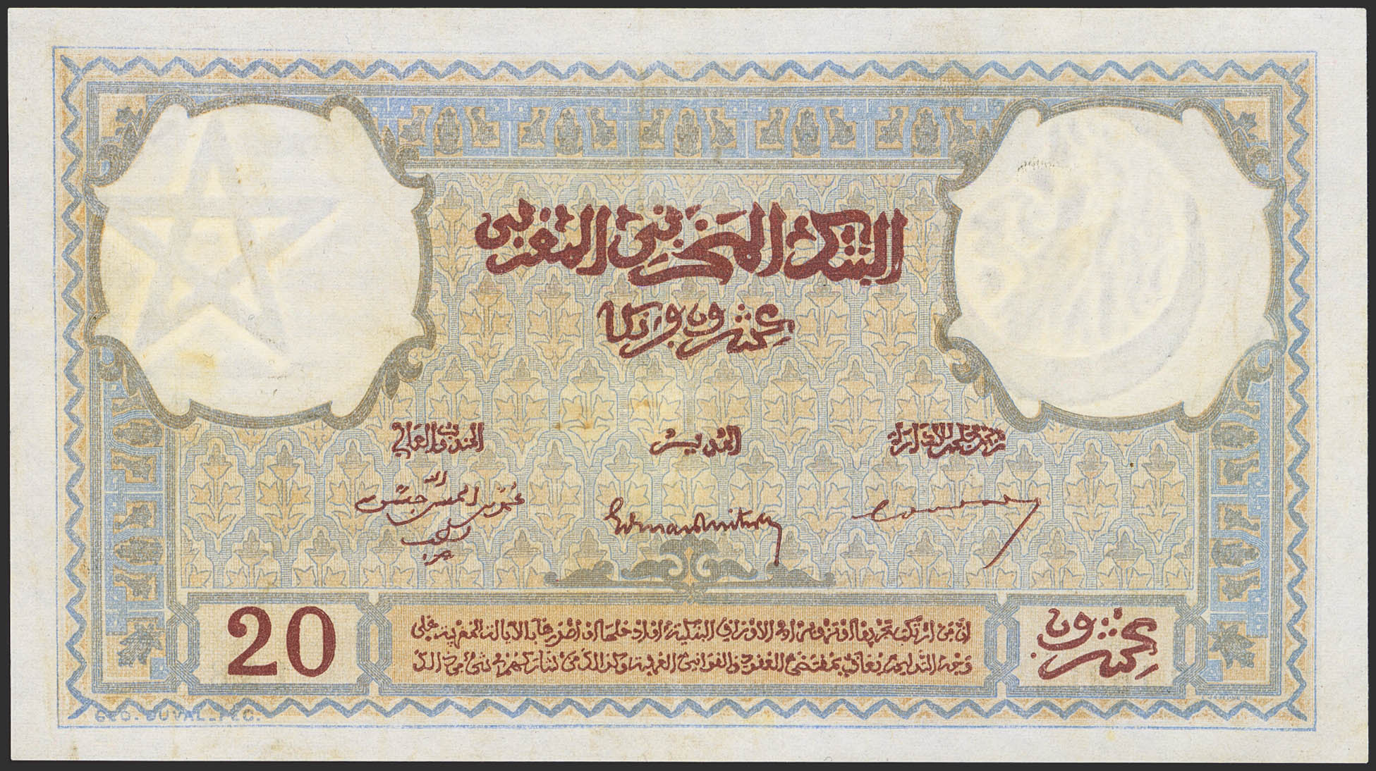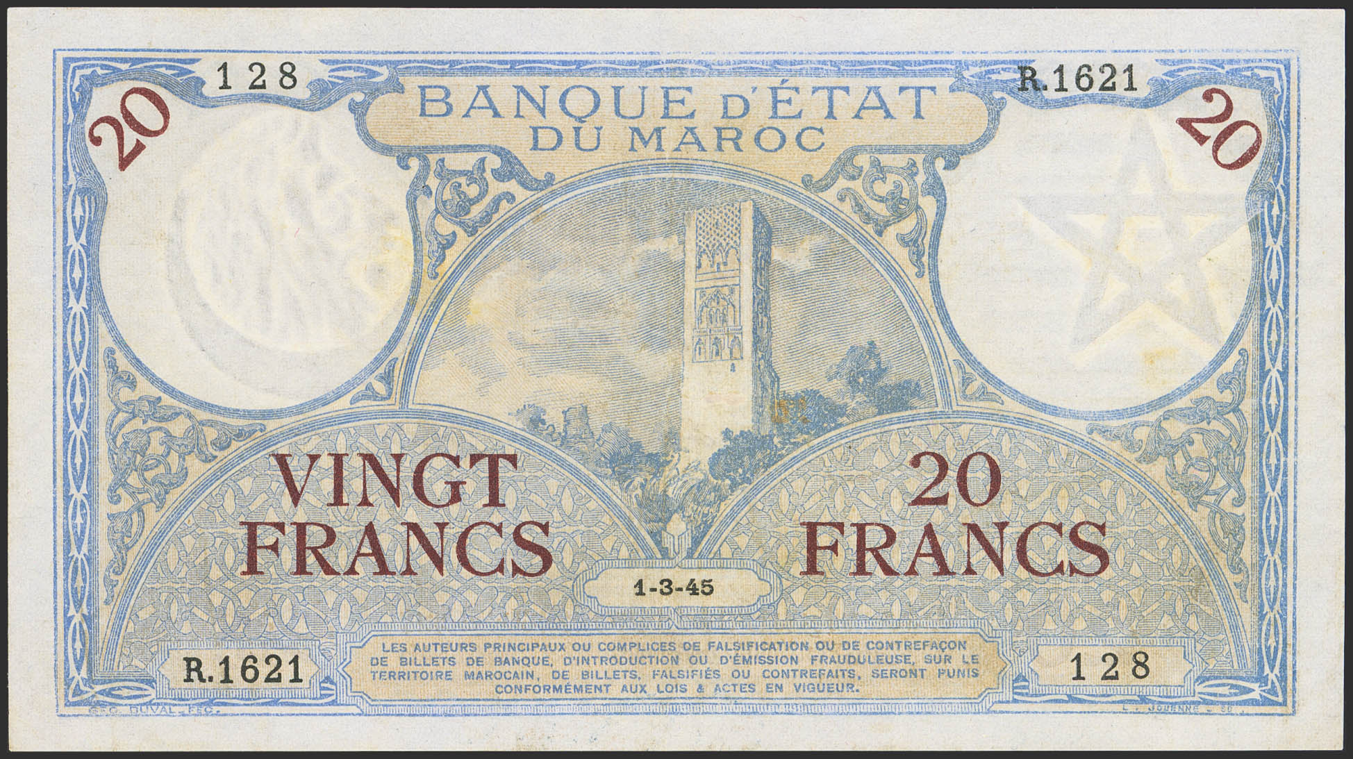 MOROCCO. 20 Francs. 1945. (Pick: 18b). Very Fine.