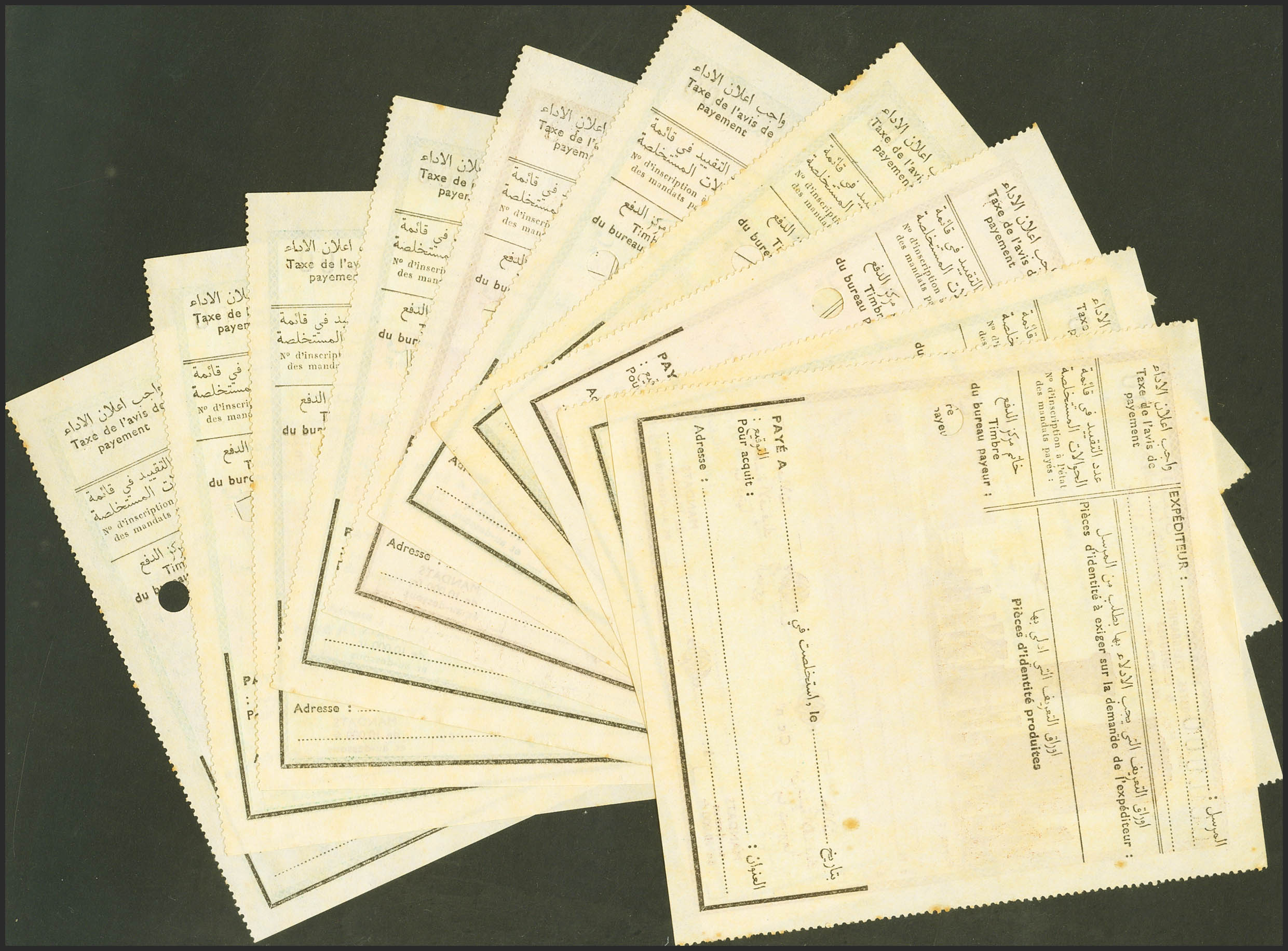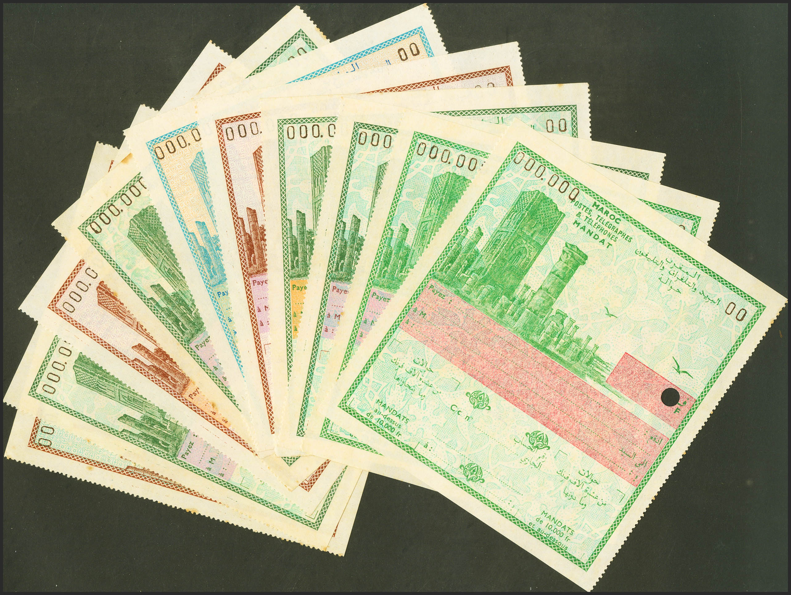 MORROCO. Set of 10 of banknotes-mandates of 10000 Francs, numbering 000000 in different colors. Rare set, spots. Uncirculated.