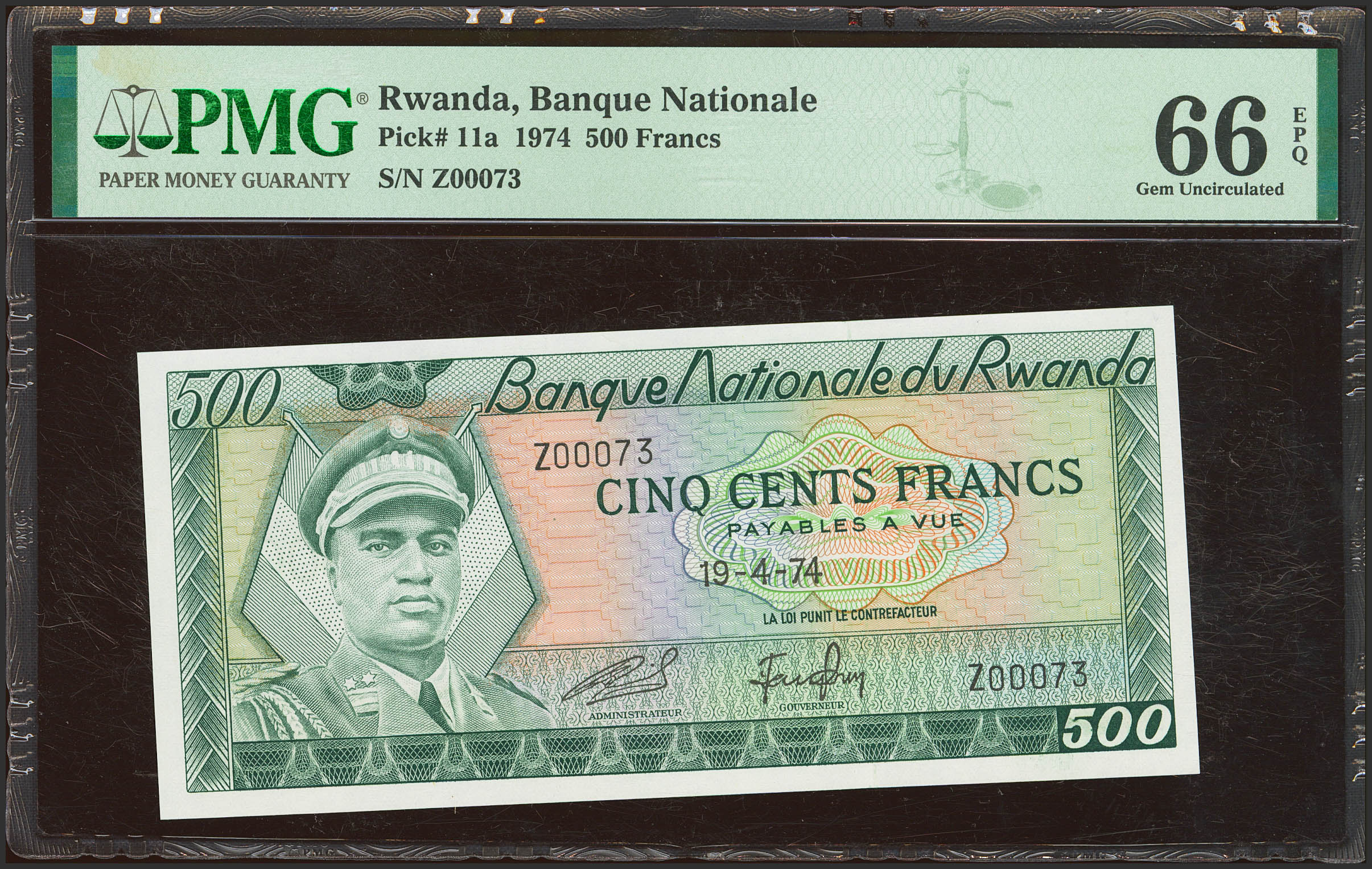 RWANDA. 500 Francs. (1974ca). (Pick: 11a). PMG66EPQ.