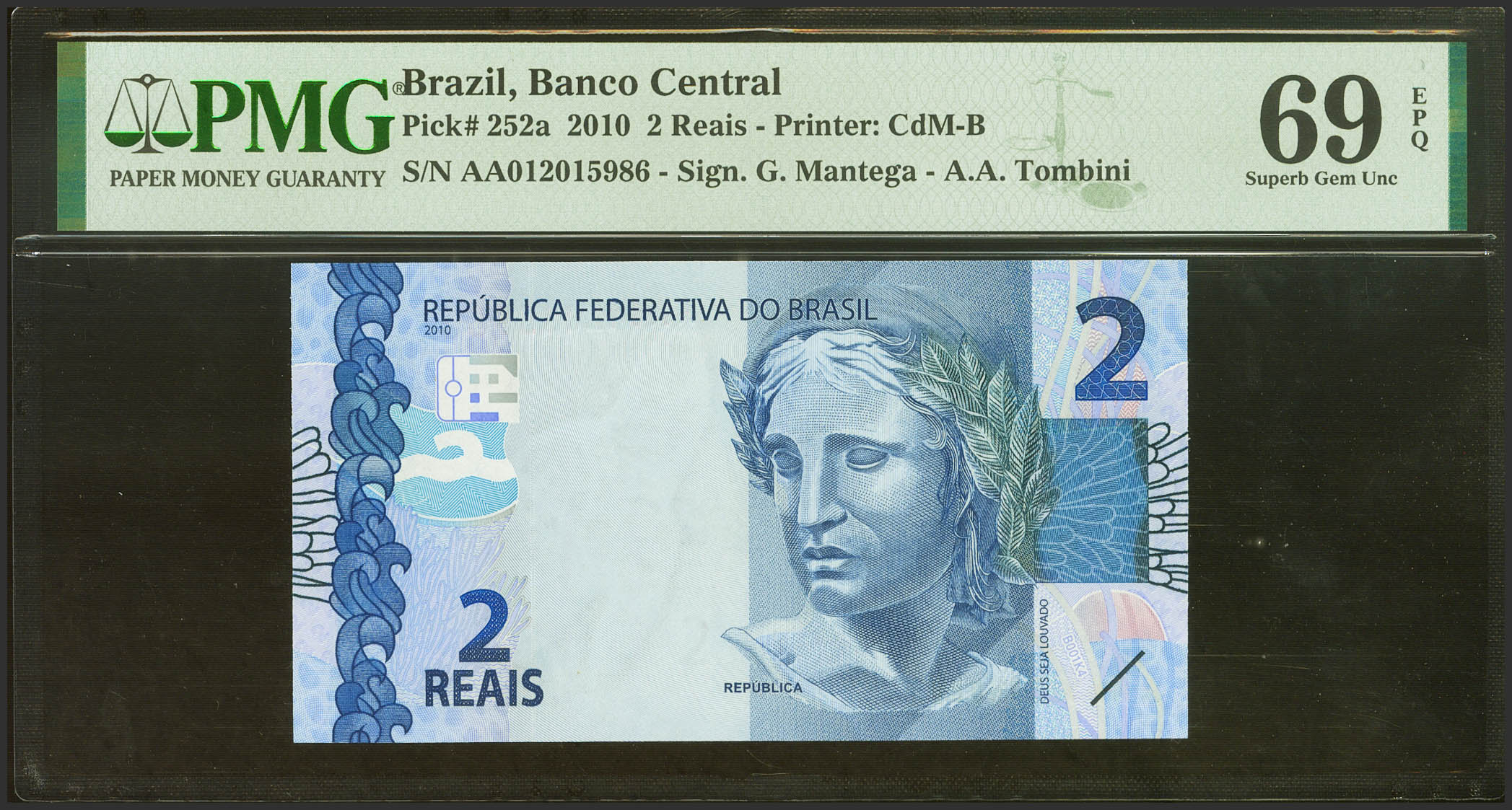 BRAZIL. 2 Reais. 2010. (Pick: 252a). PMG69EPQ.