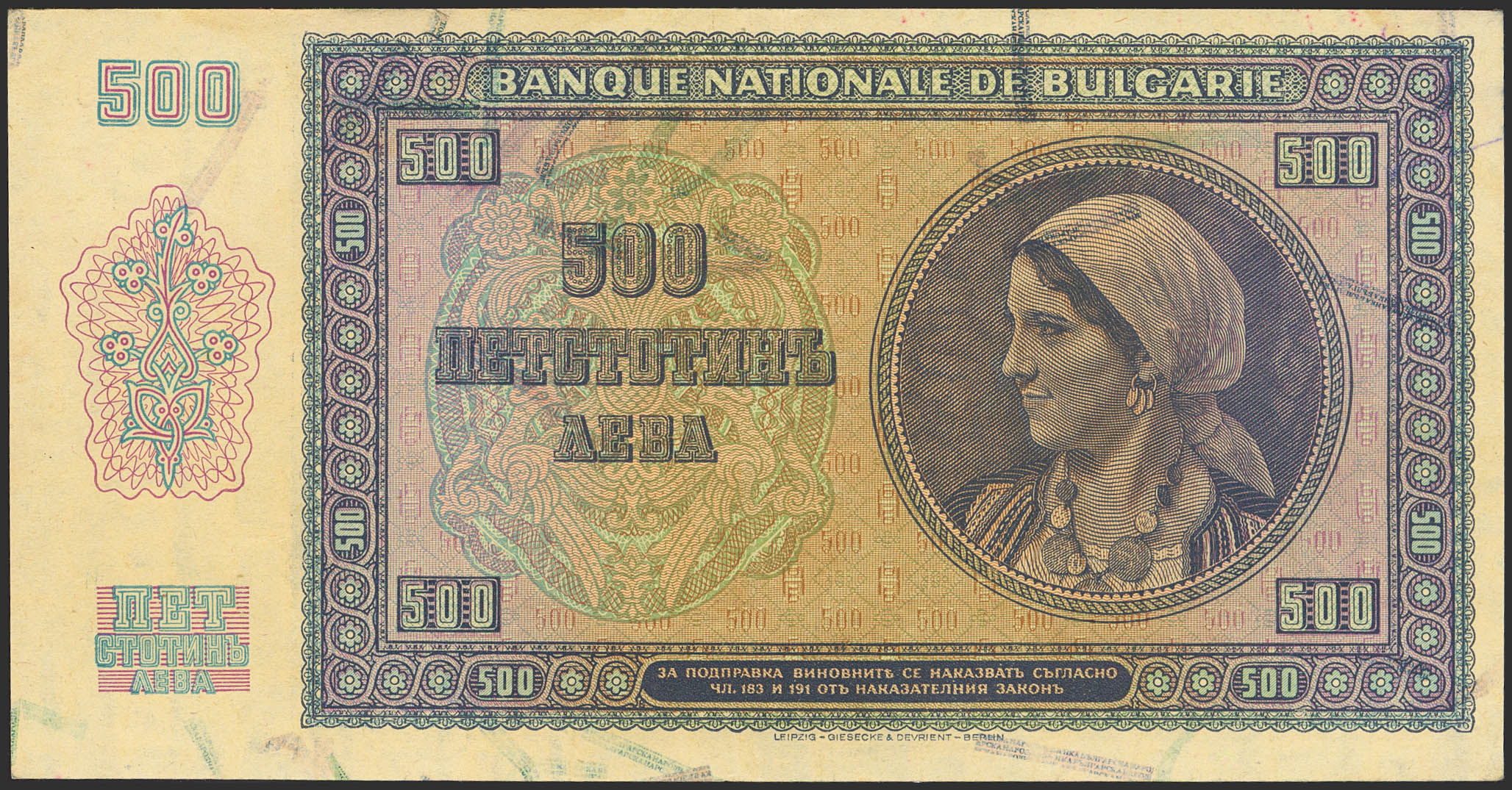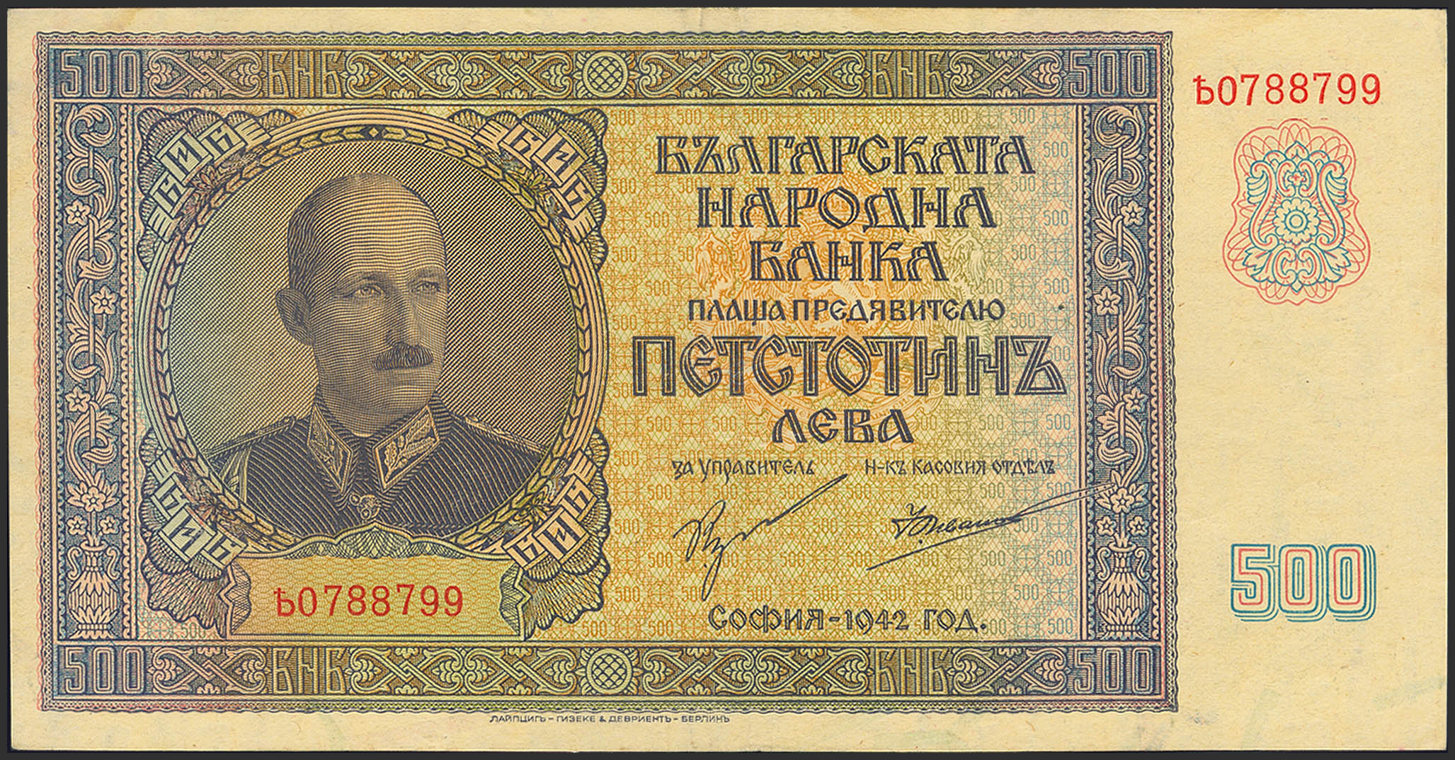 BULGARIA. 500 Leva. 1942. (Pick: 60). Extremely Fine.