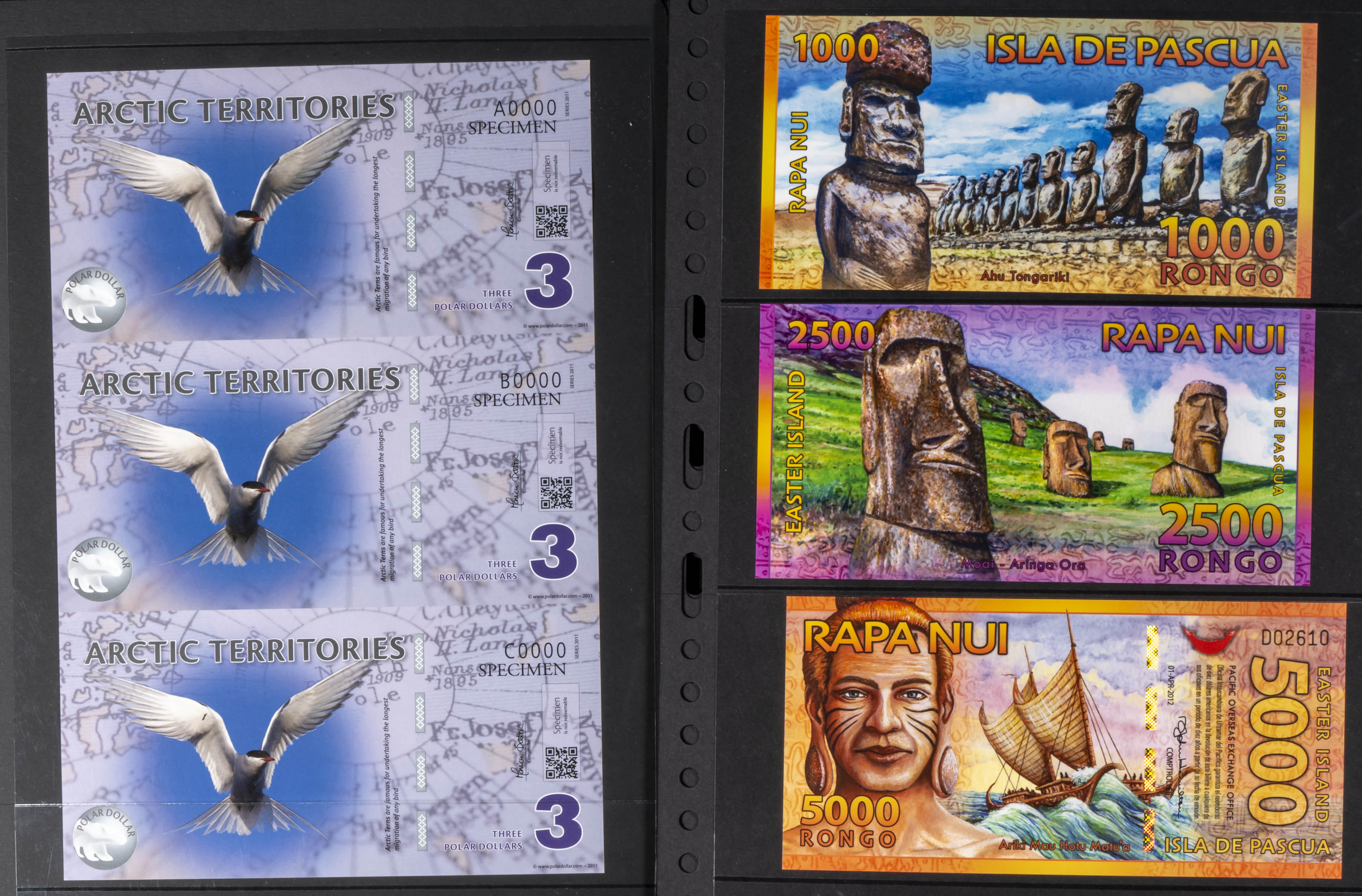 Set of 29 banknotes from Antartica, Artic, Atlantic, Galapagos Islands and Rapa Nui, all uncirculated. TO EXAMINE.