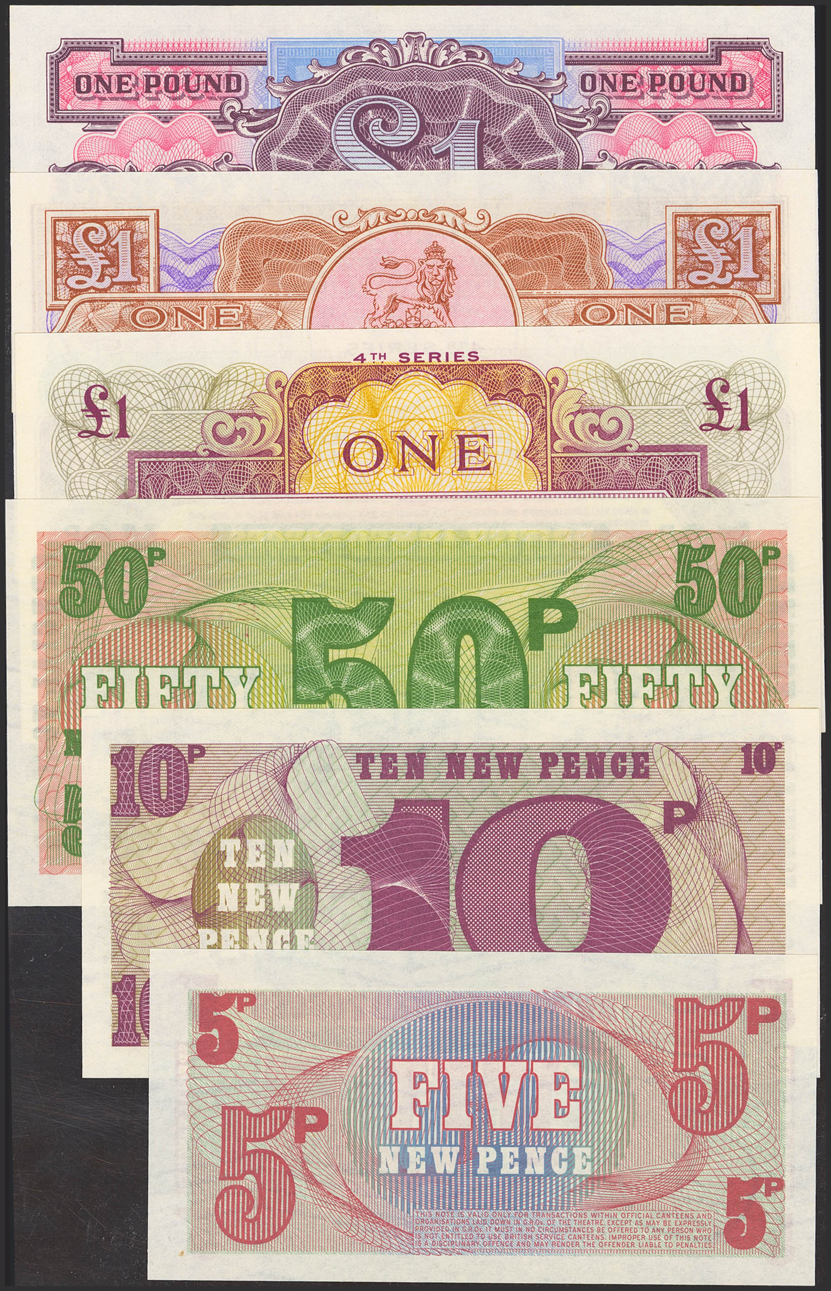 Set of 6 British Armed Forces banknotes of different issues and different qualities. TO EXAMINE