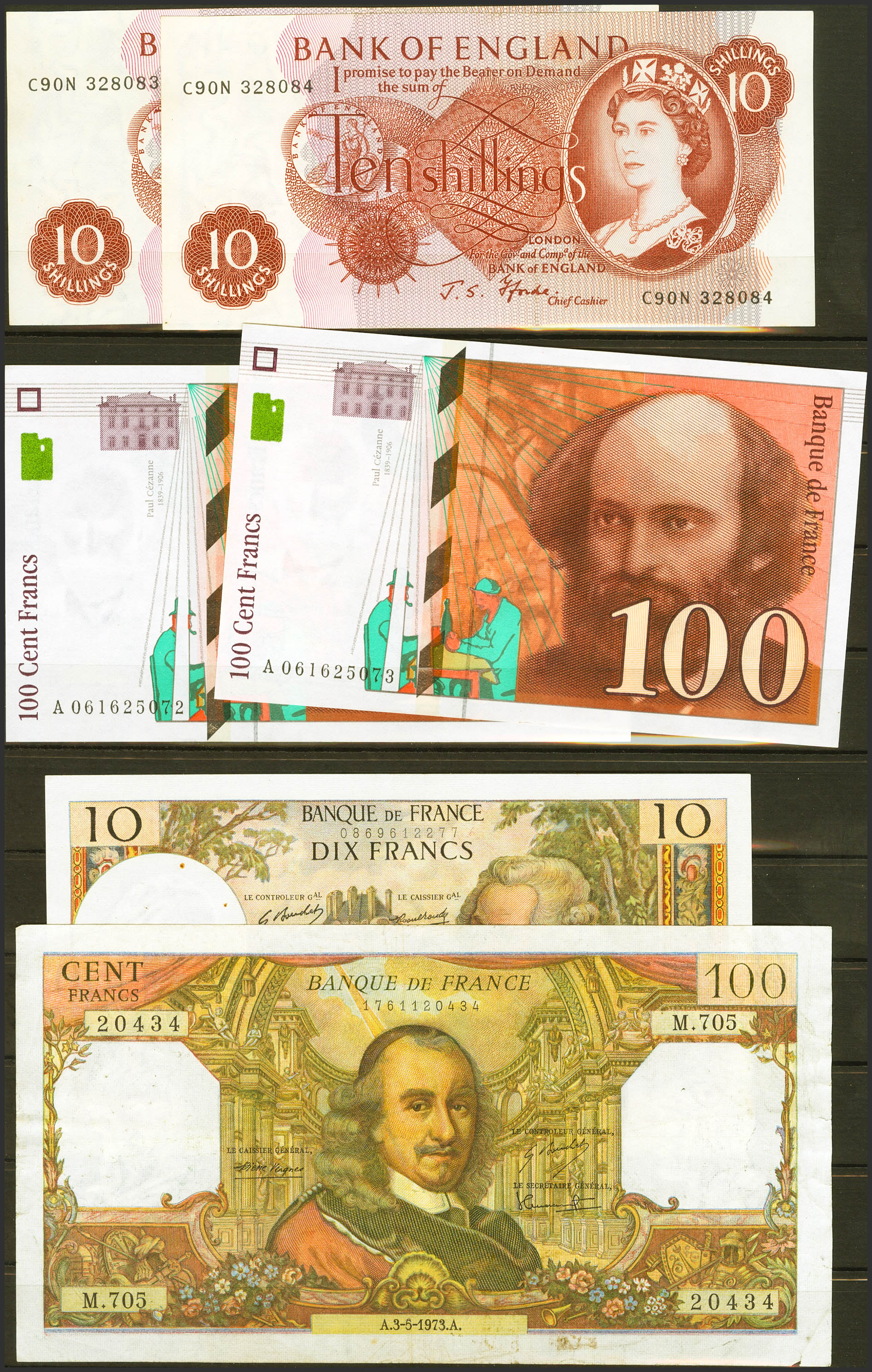 Set of 12 banknotes from Angola (6), France (4), England (2) and various issues in different qualities, some of them correlative with each other. TO EXAMINE.