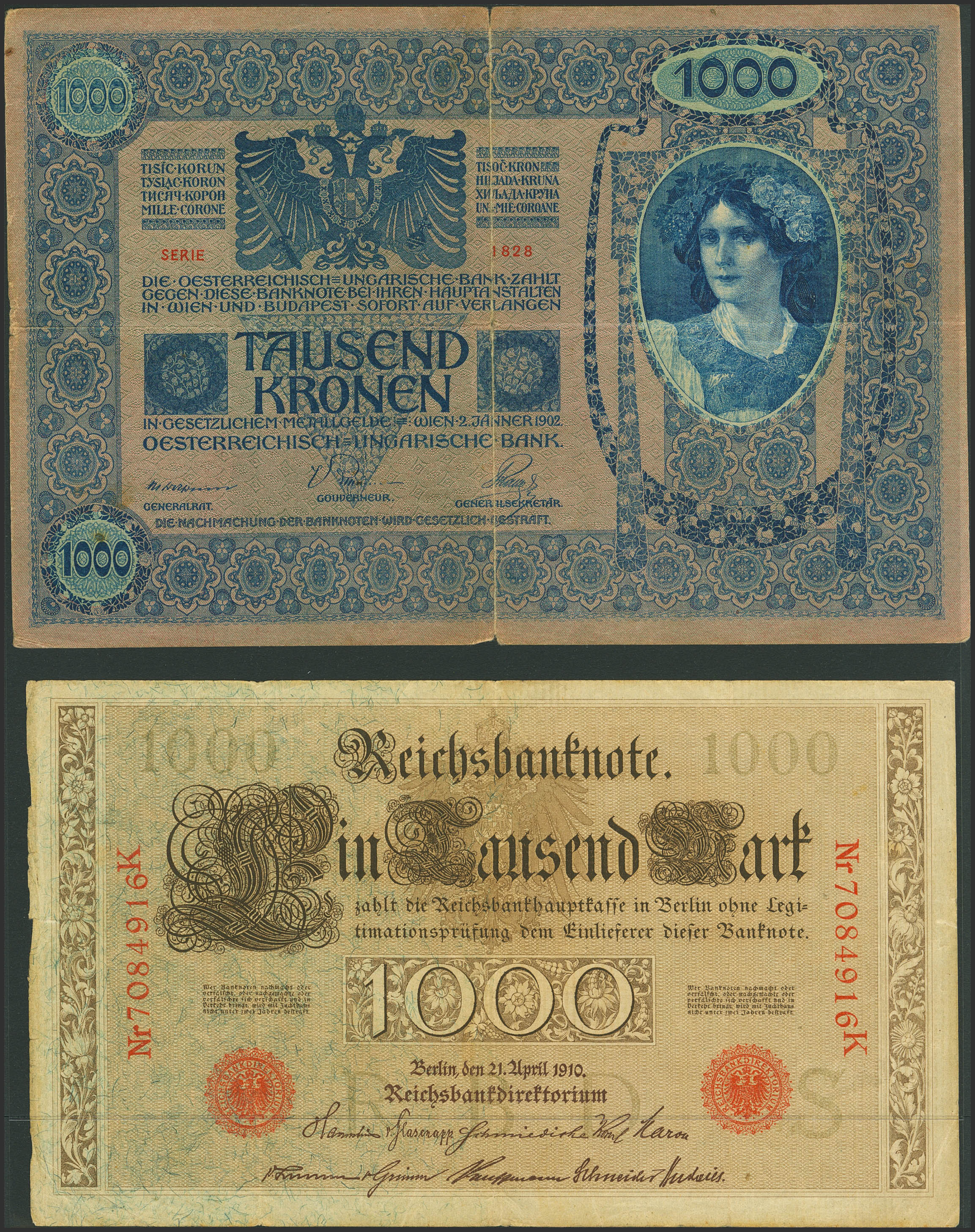 Set of 9 banknotes from different countries in various qualities. TO EXAMINE.