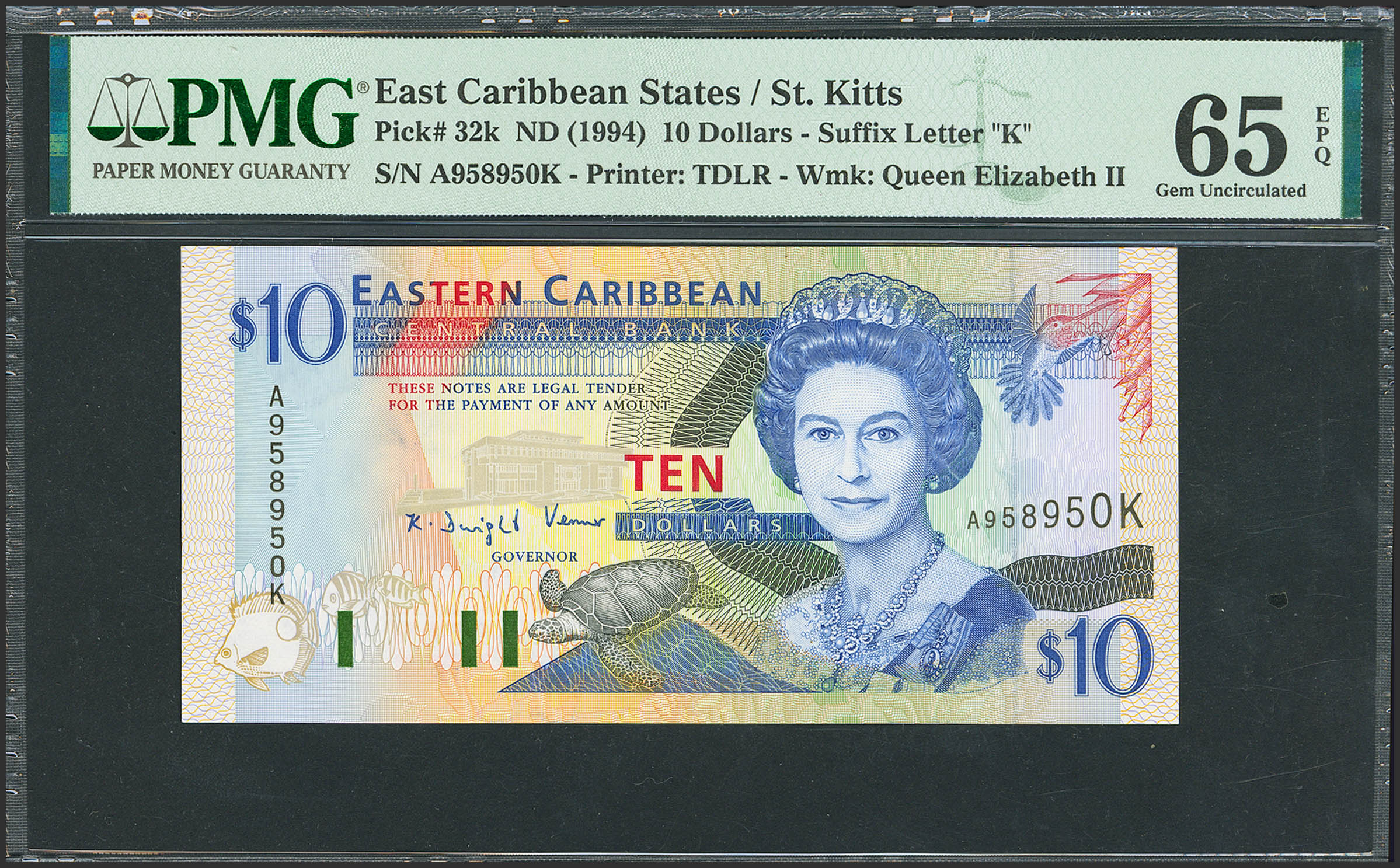 EAST CARIBBEAN STATES. 10 Dollars. (Pick: 32k). PMG65EPQ.