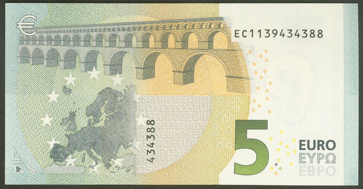 5 Euros. 2 May 2013. Lagarde signature. Serial E (Slovakia) (Edifil 2021: 493A). Uncirculated.
