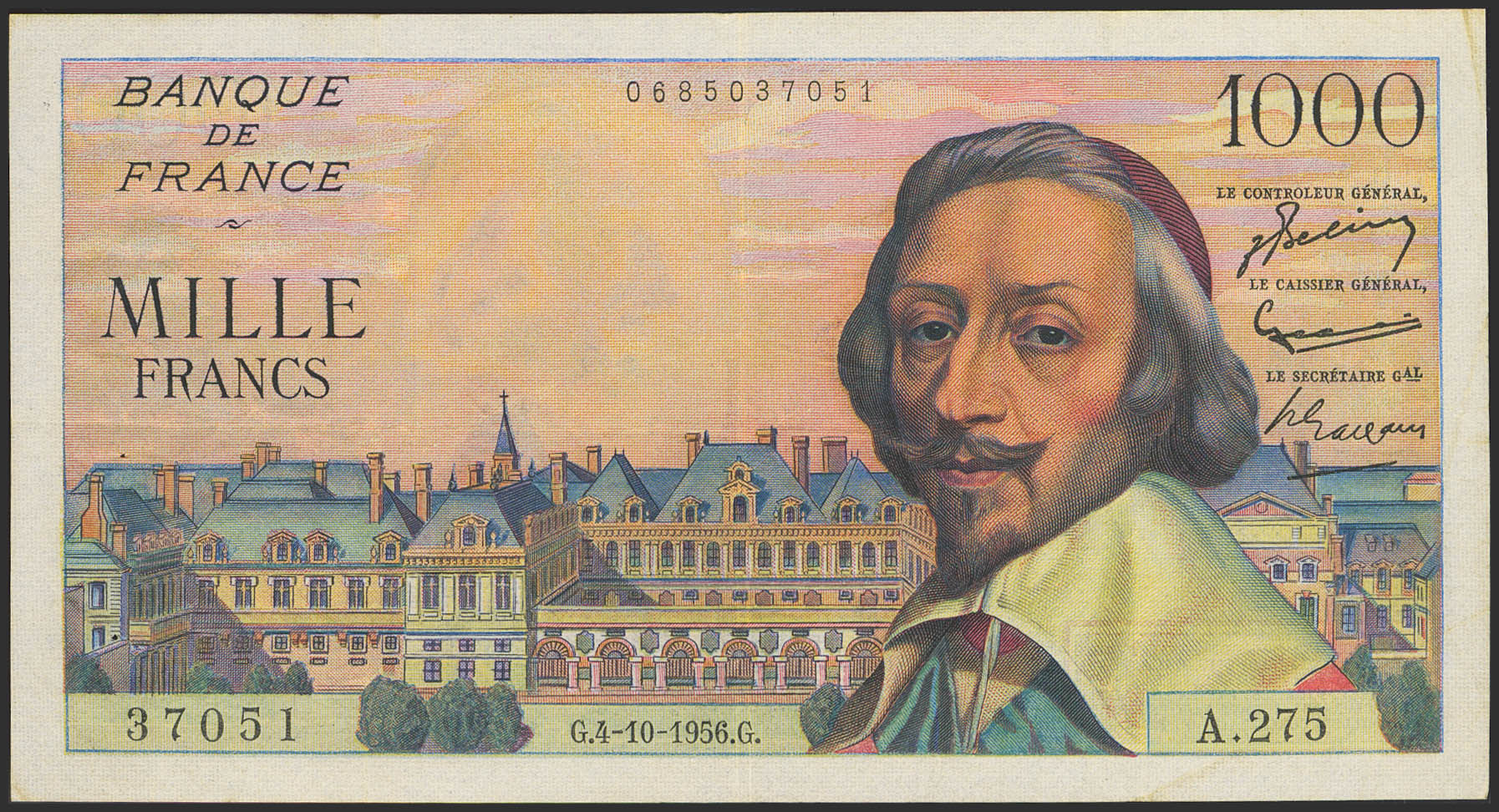 FRANCE. 1000 Francs. 1956. (Pick: 134a). Pinholes. Very Fine.