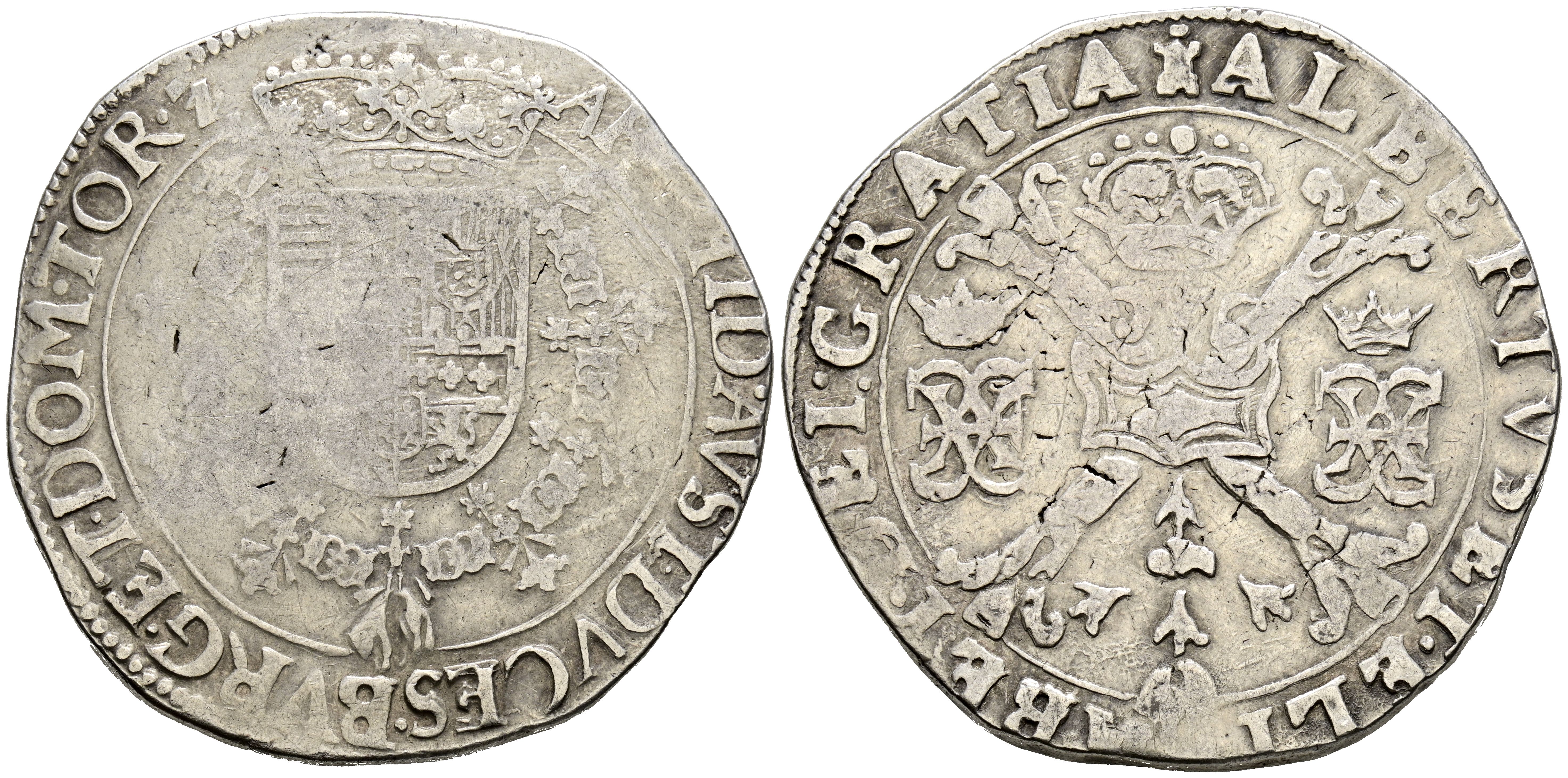 ALBERTO E ISABEL (1598-1621). 1 Patagón. (Ar. 27,87g/41mm). S/D. Tournai. (Vicenti 379). MBC-.