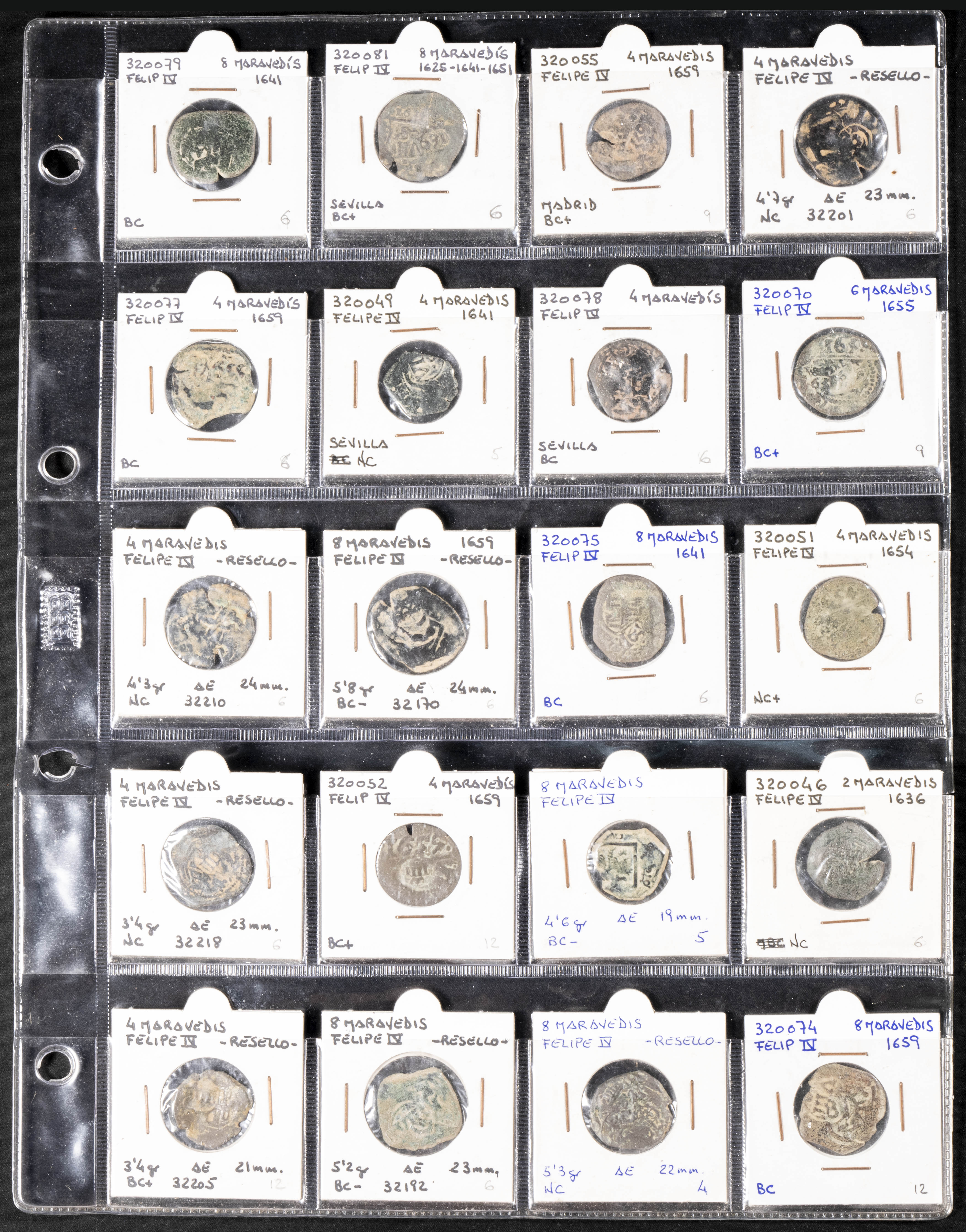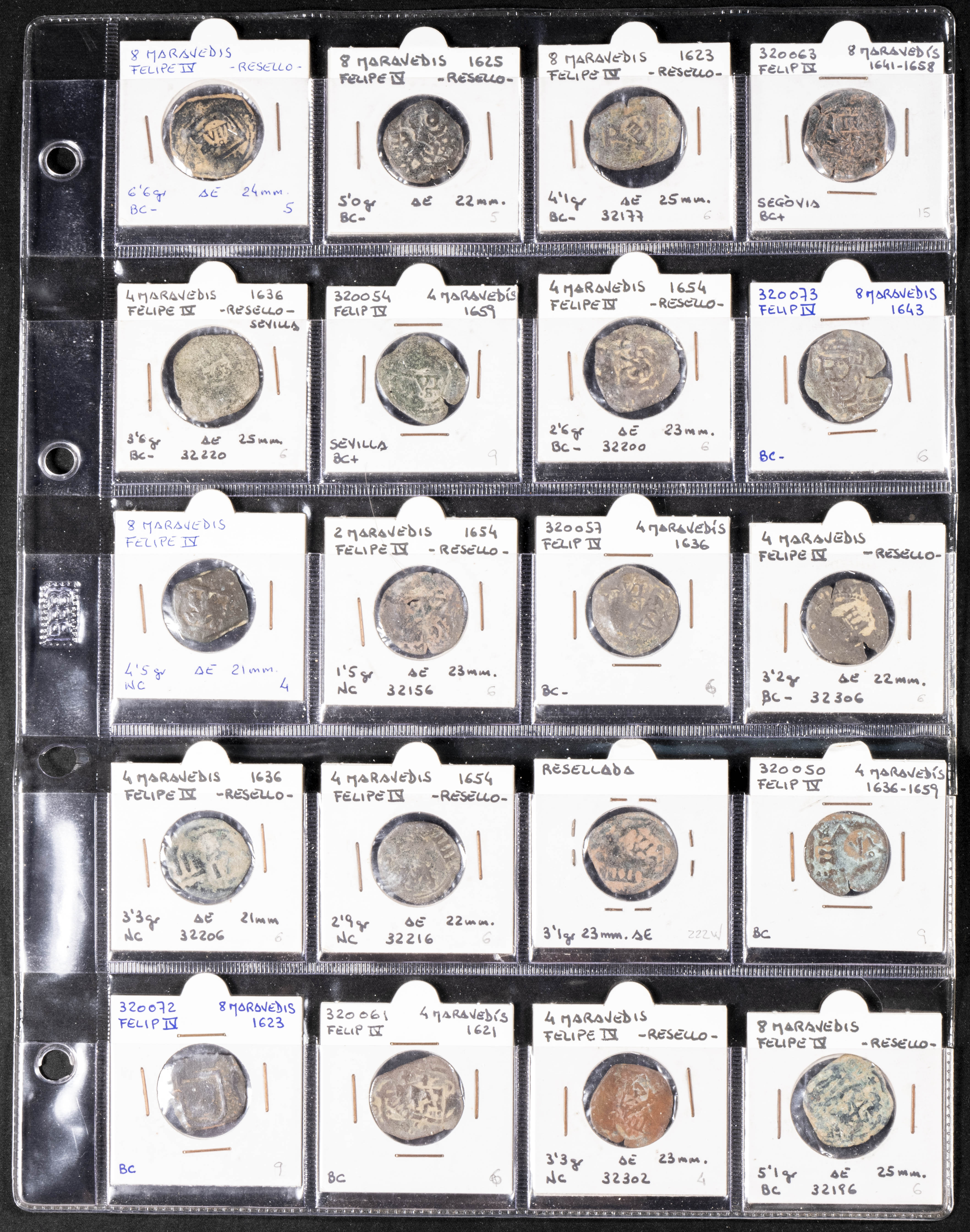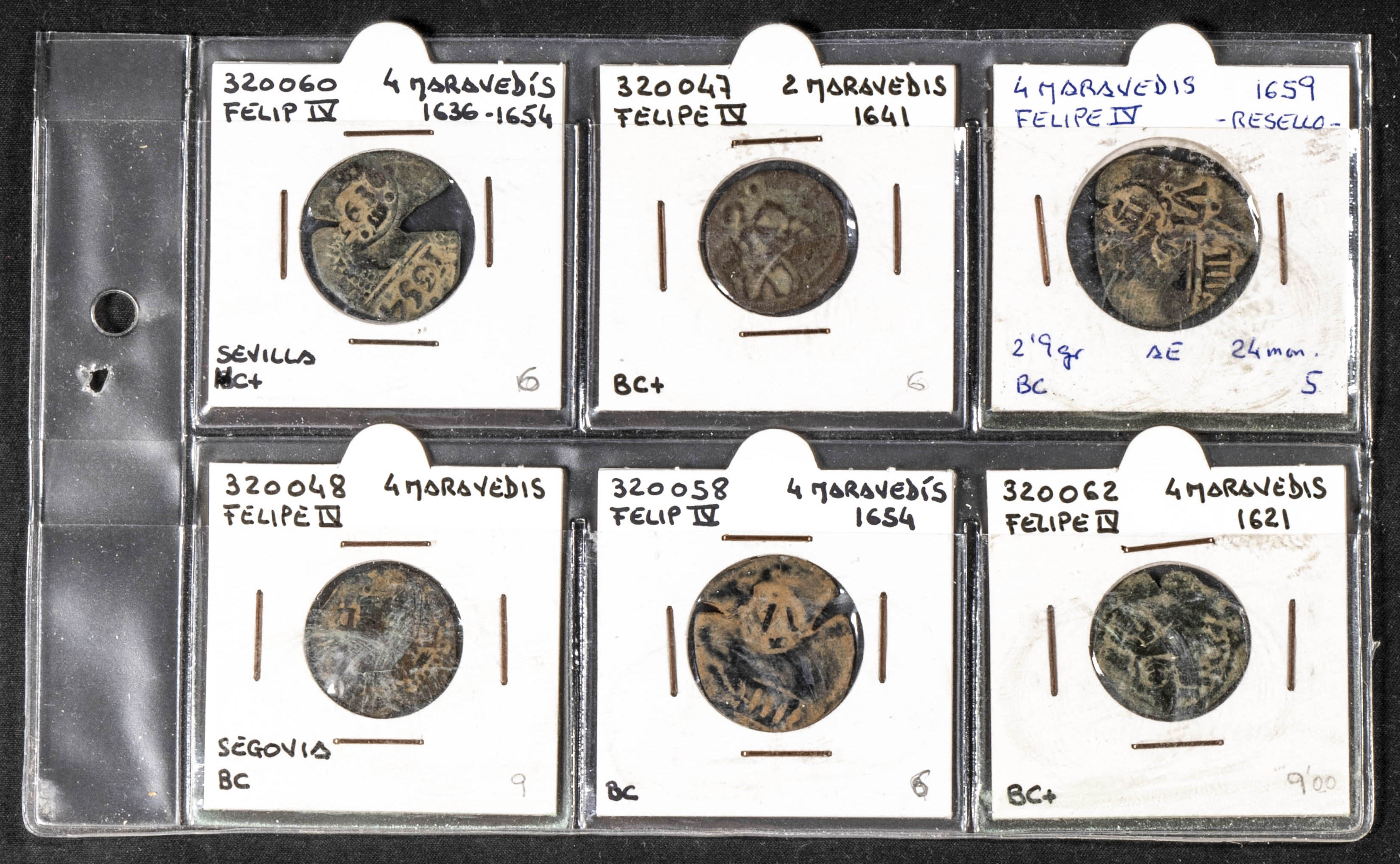 FELIPE IV (1621-1665). Conjunto de 66 cobres de Felipe IV resellados, todos ellos clasificados por el coleccionista. IMPRESCINDIBLE EXAMINAR.