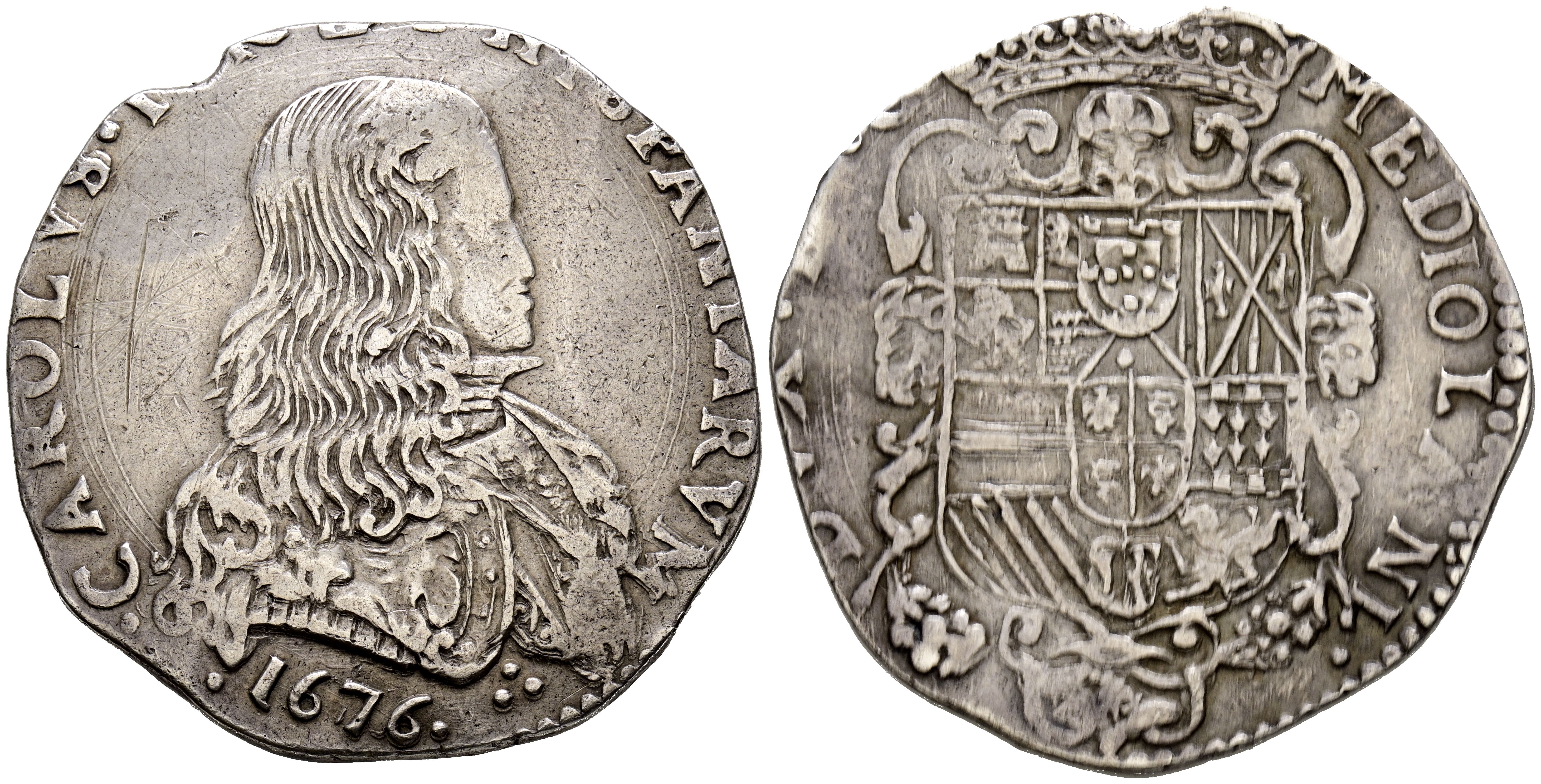 CARLOS II (1665-1700). Filippo (Ar. 27,49g/41mm). 1676. Milán. (Vicenti 19). MBC. Fecha y marca de ensayador completas. Escasa e interesante.