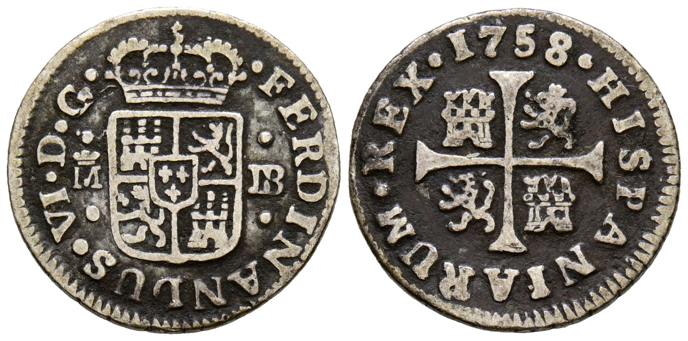 FERNANDO VI (1746-1759). 1/2 Real. (Ar. 1,44g/15mm). 1758. Madrid JB. (Cal-2019-76). MBC.
