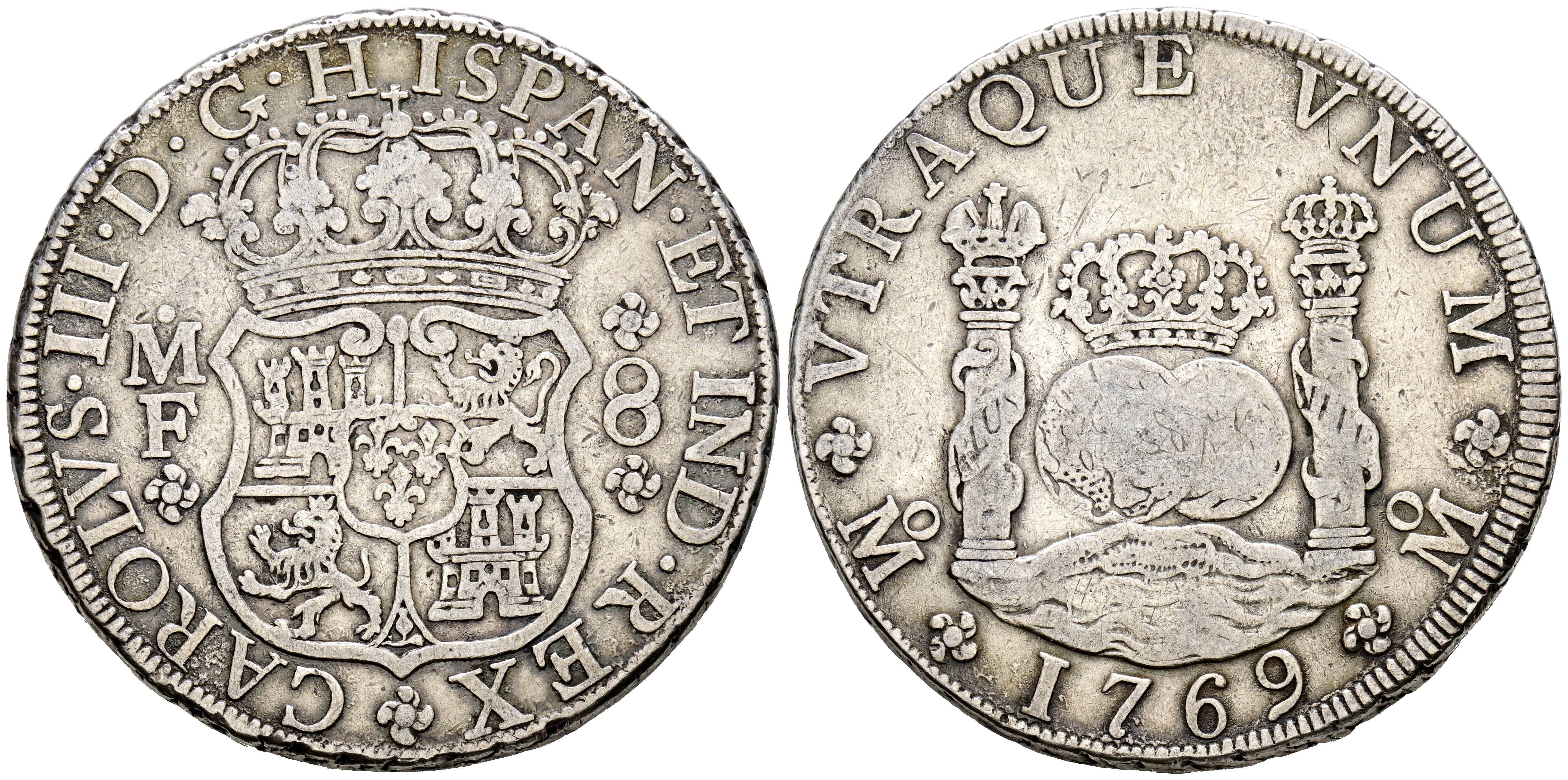 CARLOS III (1759-1788). 8 Reales. (Ar. 26,70g/39mm). 1769. México MF. (Cal-2019-1095). MBC-.