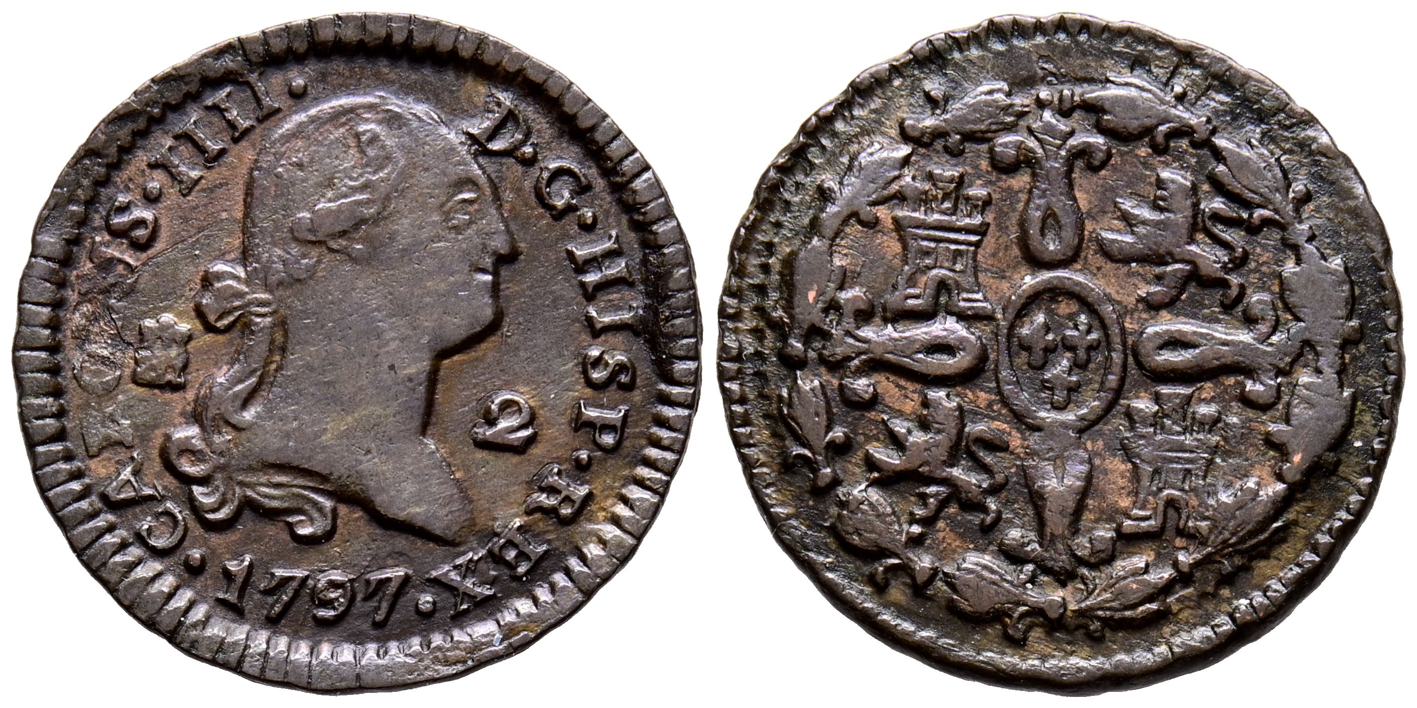 CARLOS IV (1788-1808). 2 Maravedís. (Ae. 2,12g/20mm). 1797. Segovia. (Cal-2019-32). MBC.