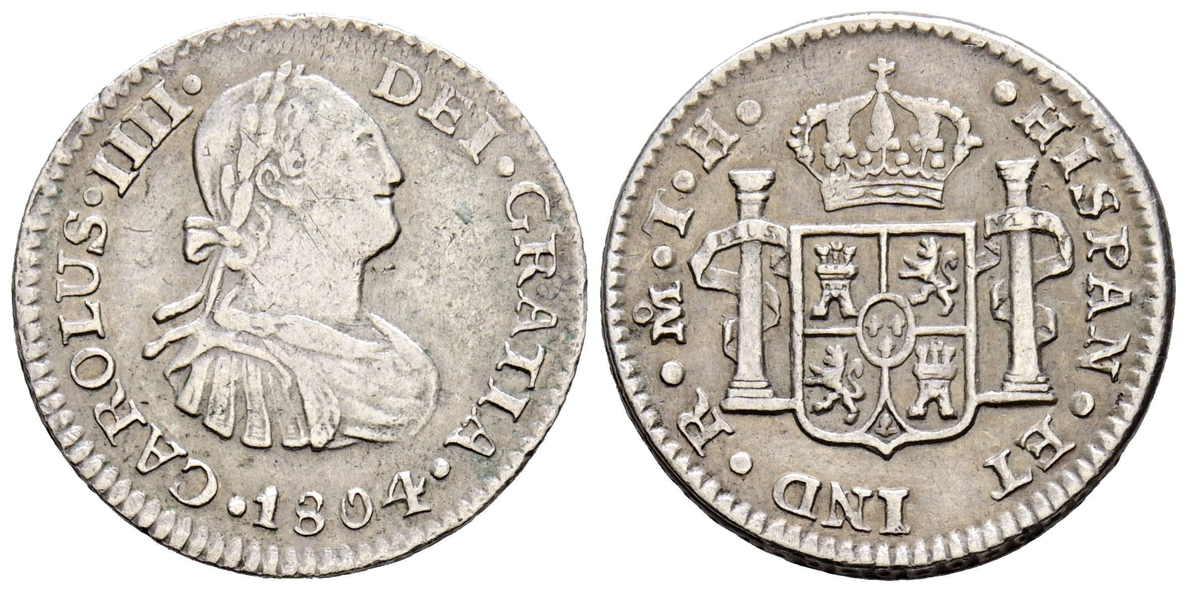 CARLOS IV (1788-1808). 1/2 Real. (Ar. 1,68g/16mm). 1804. México TH. (Cal-2019-290). MBC+.