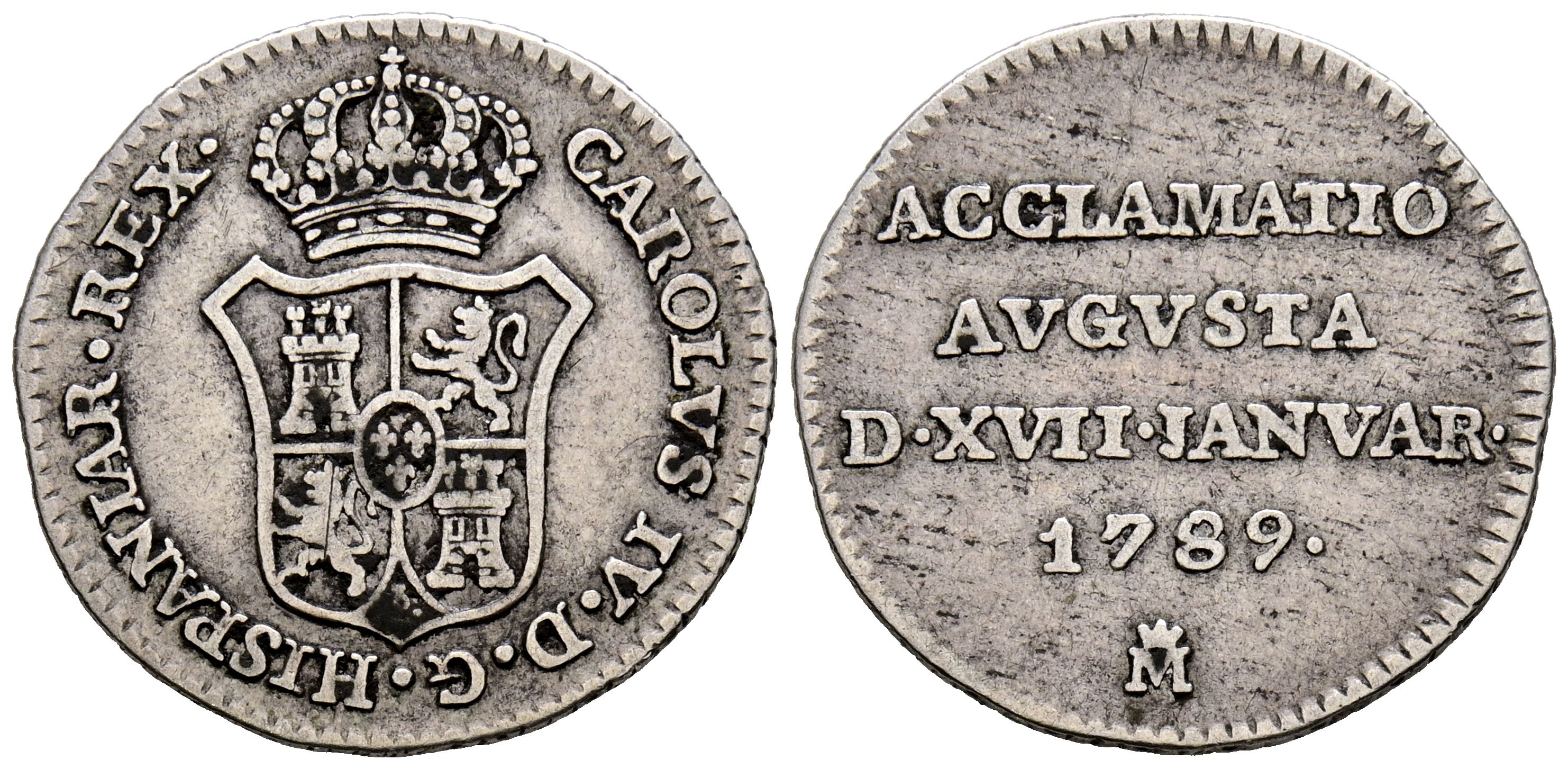 CARLOS IV (1808-1833). Proclamación en Madrid. (Ar. 2,87g/21mm). 1789. Módulo de 1 Real. (Ha. 65). MBC-.