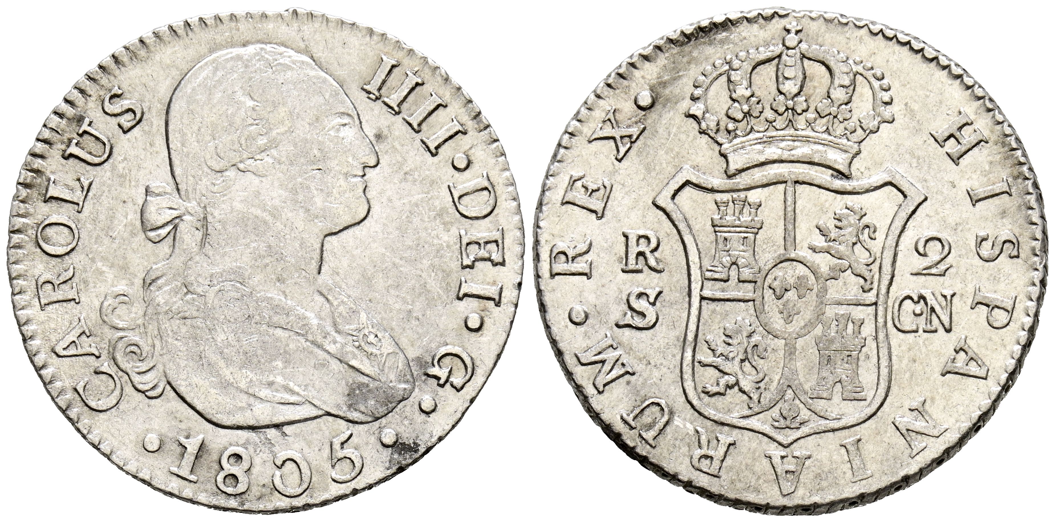 CARLOS IV (1788-1808). 2 Reales. (Ar. 5,89g/26mm). 1805. Sevilla CN. (Cal-2019-725). MBC+. Restos de brillo original.