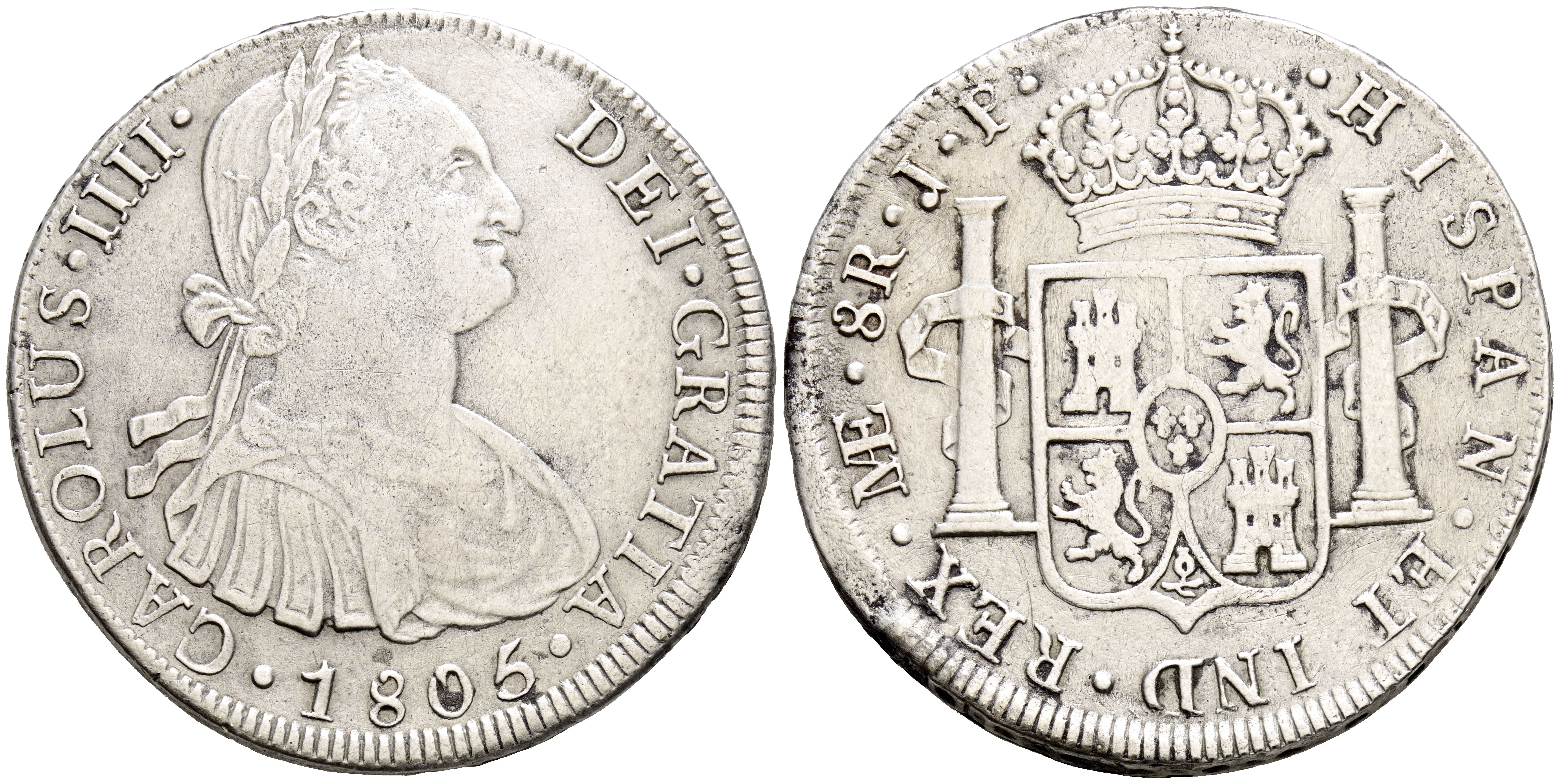 CARLOS IV (1788-1808). 8 Reales. (Ar. 25,73g/39mm). 1805. Lima JP. (Cal-2019-925). MBC-Usada como joya.