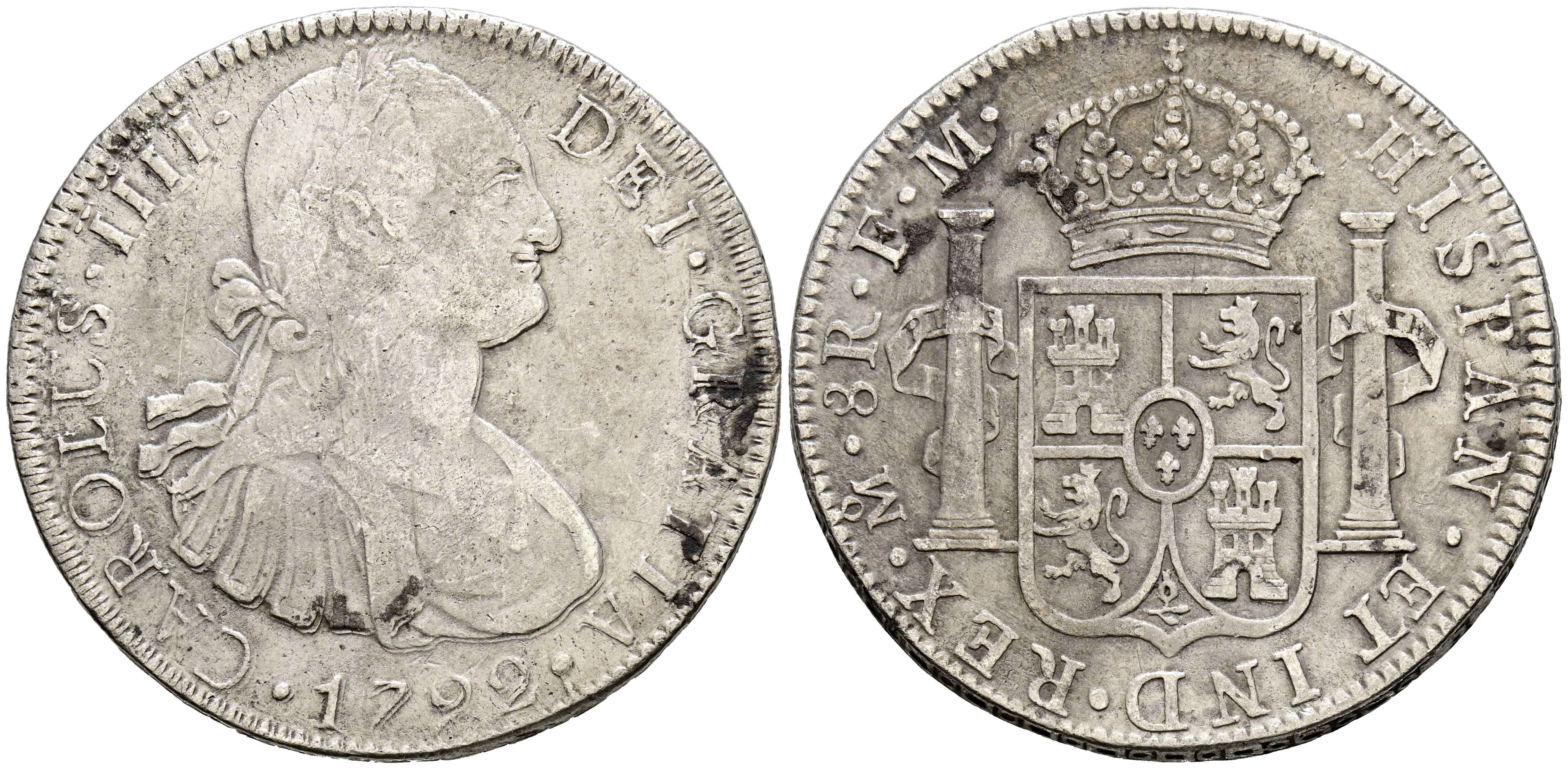 CARLOS IV (1788-1808). 8 Reales. (Ar. 26,01g/39mm). 1792. Mexico FM. (Cal-2019-954). MBC-. Limpiado.
