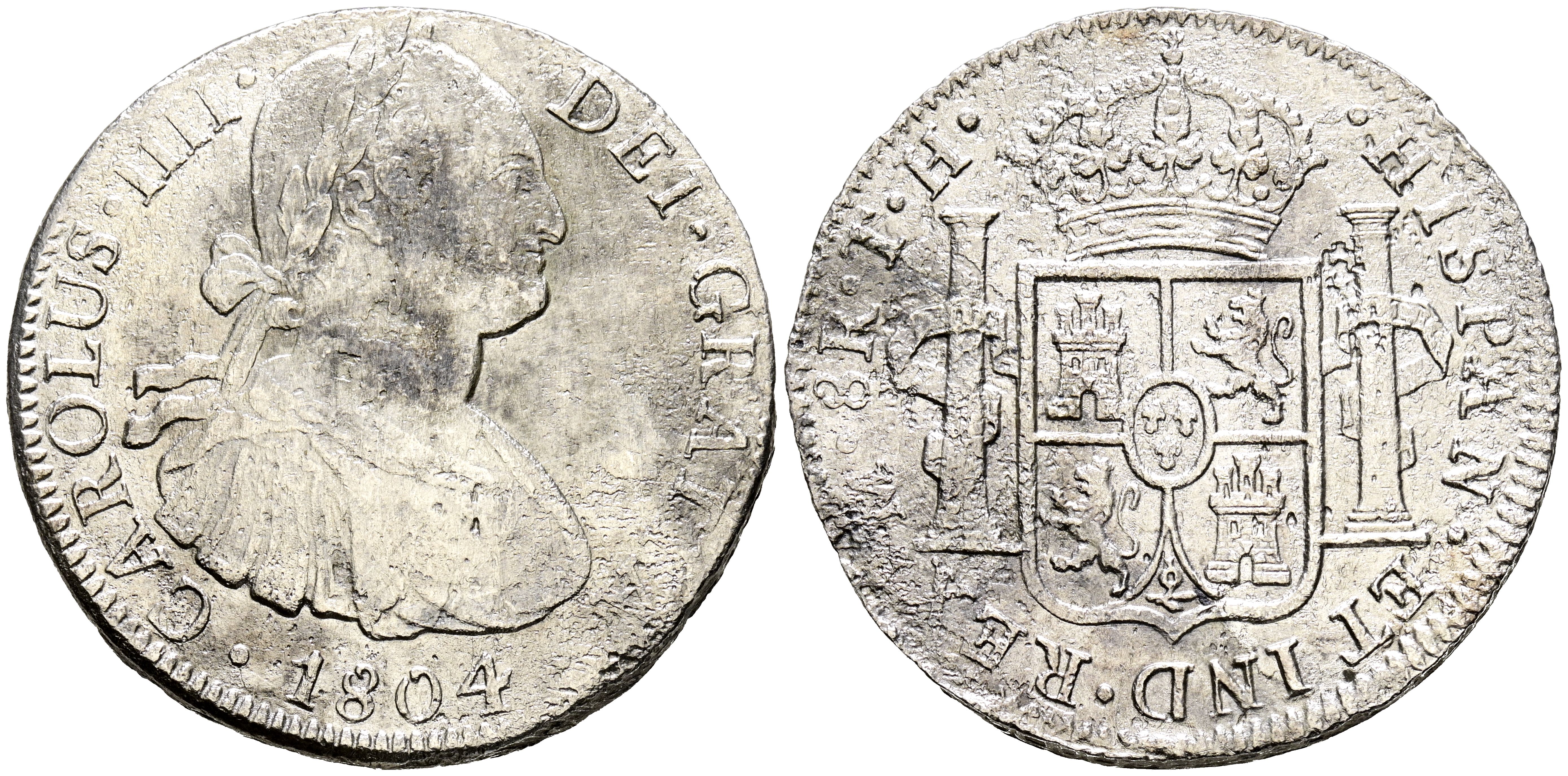 CARLOS IV (1788-1808). 8 Reales. (Ar. 24,42g/39mm). 1804. México TH. (Cal-2019-980). MBC-. Oxidaciones limpiadas. MBC.