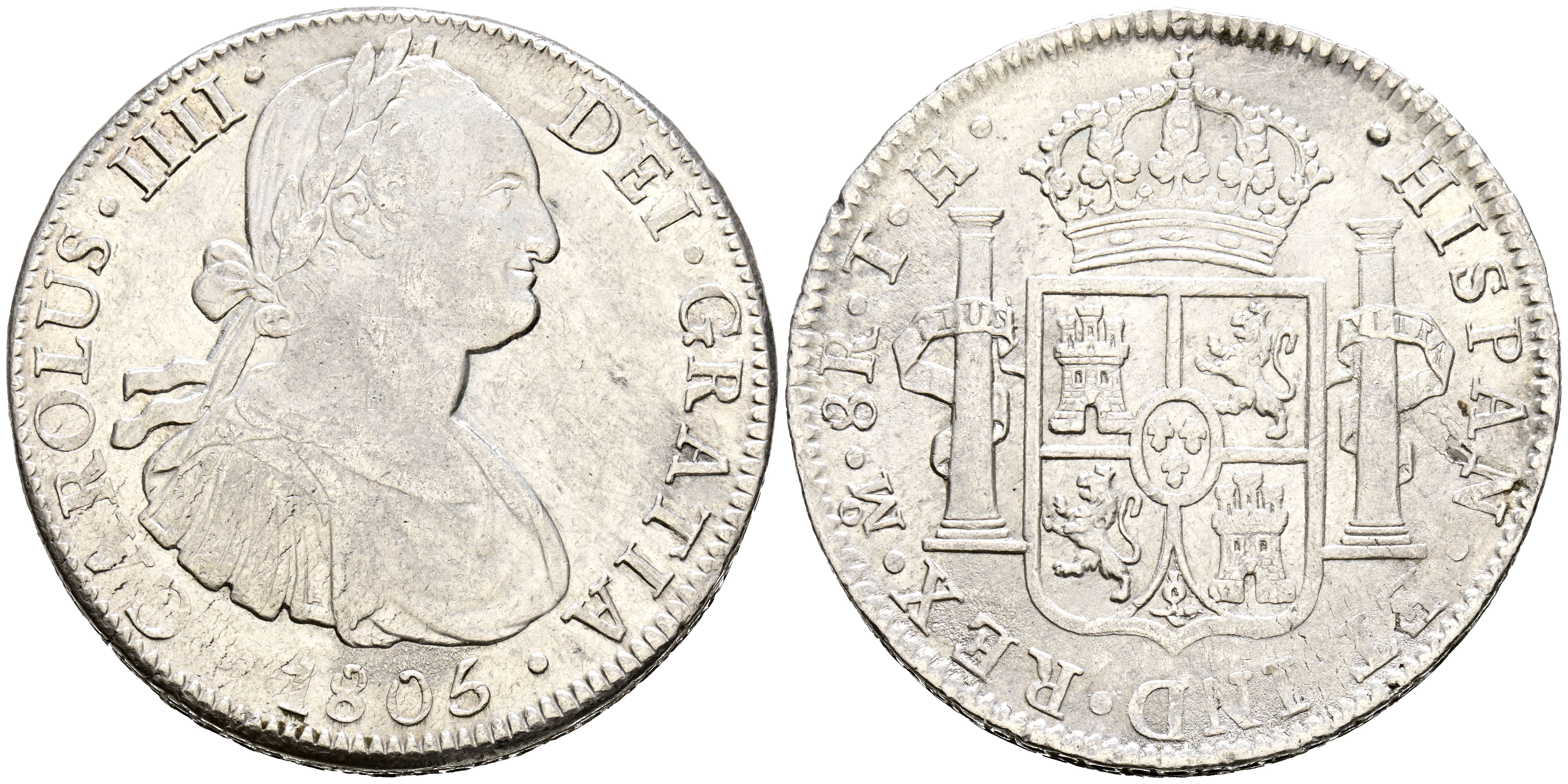 CARLOS IV (1788-1808). 8 Reales. (Ar. 26,89g/40mm). 1805. México TH. (Cal-2019-983). MBC+.