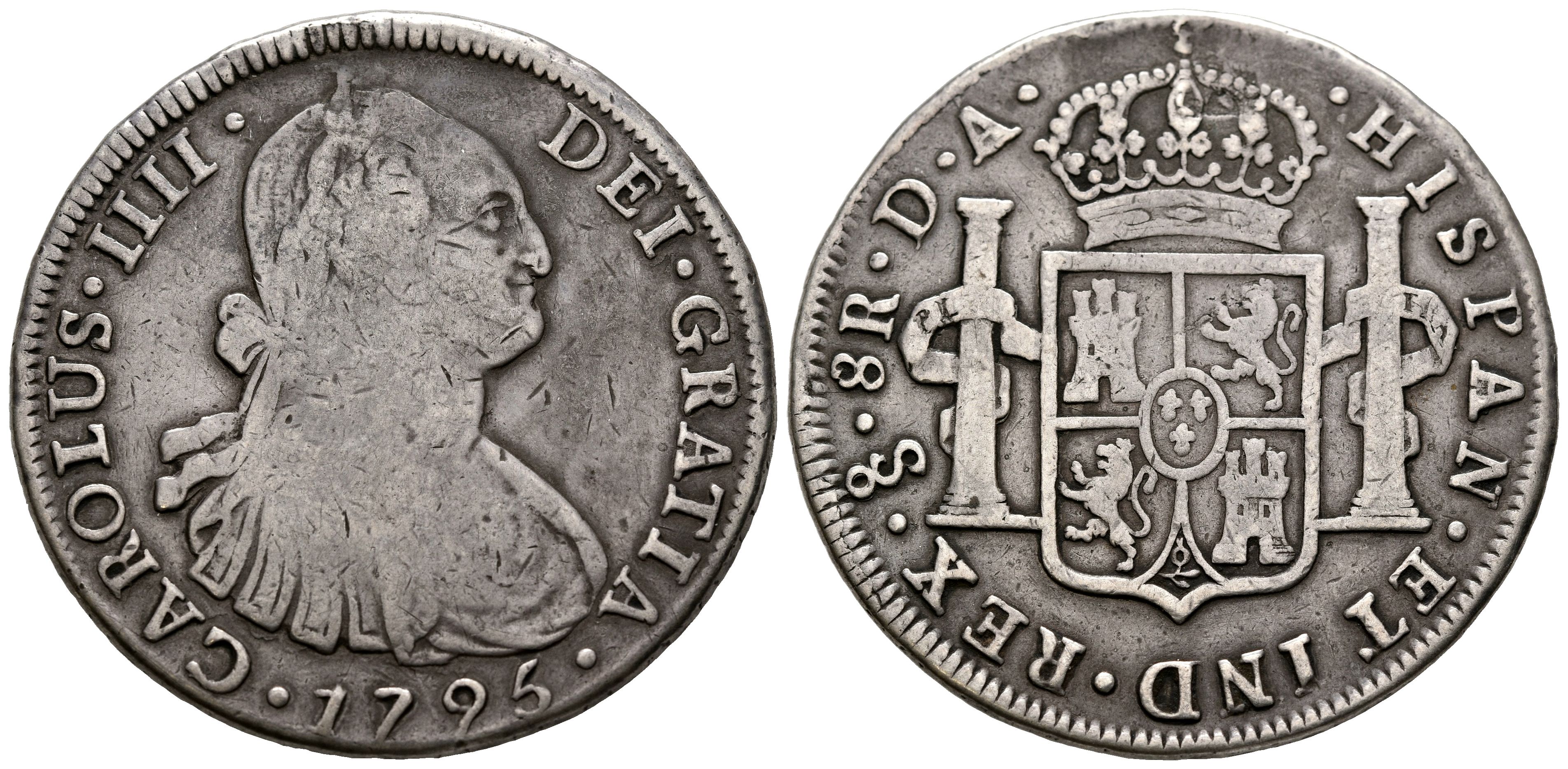 CARLOS IV (1788-1808). 8 Reales. (Ar. 26,49g/41mm). 1795. Santiago DA. (Cal-2019-1024). MBC-. Raro ejemplar.