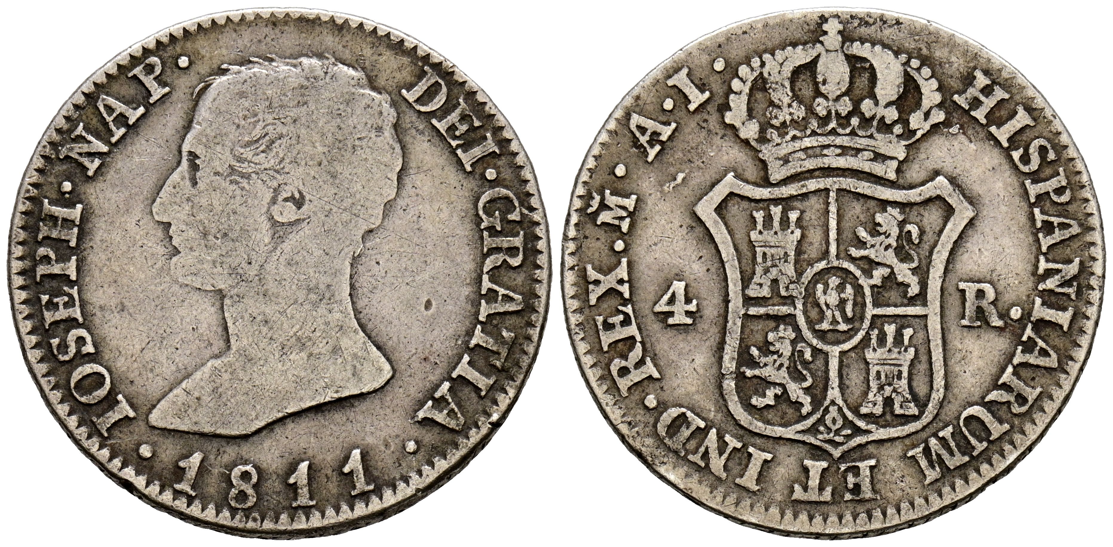 JOSÉ NAPOLEON (1808-1813). 4 Reales. (Ar. 5,58g/26mm). 1811. Madrid AI. (Cal-2019-15). MBC.